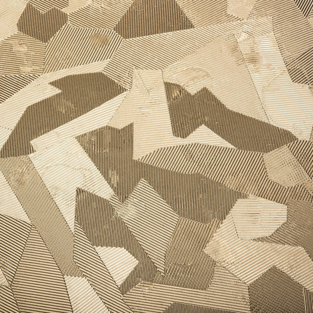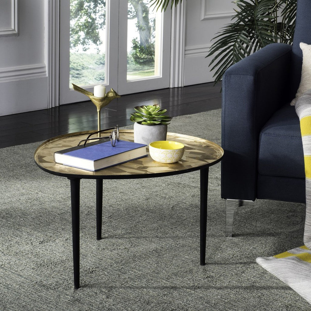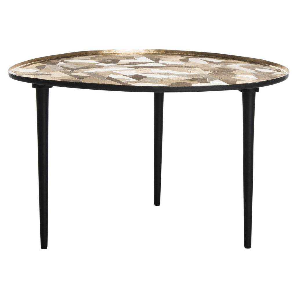 Designed to capture the spirit of organic modernism, this side table brings substance and style to any interior. A shimmering brass finish illuminates the bold graphic texture of its oval top while its black powder coated legs lend sleek sophistication.