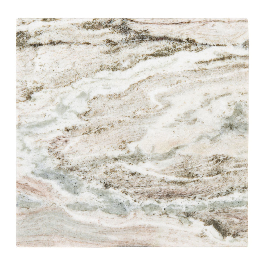 Refining the distinct look of sculpted stone, this stone top accent table brims artistic character. The smooth, square marble surface, juxtaposed atop an open, hairpin leg frame, conveys fabulous decorative contrast in any modern room.