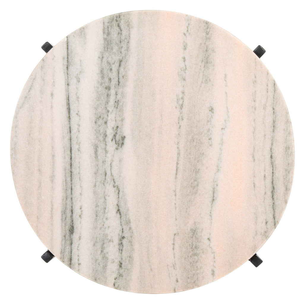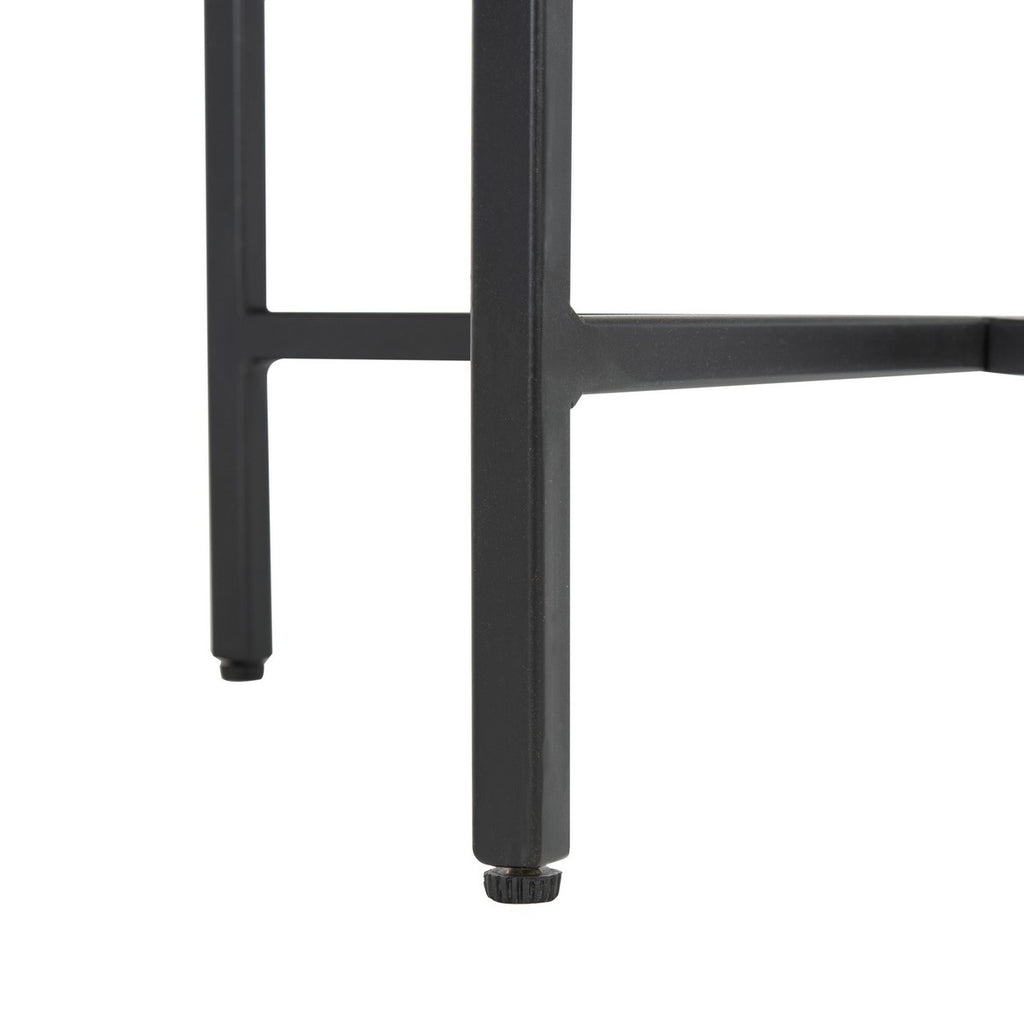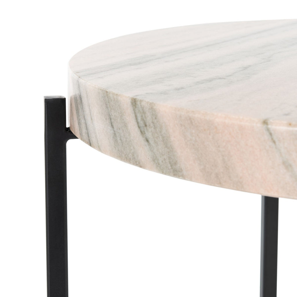Ideal for displaying a sunflower bouquet or antique lamp, the striated lines of this accent table suggests the organic beauty of nature. The desert toned marble top, supported by open air black metal cross leg base, elevates and enriches room décor.