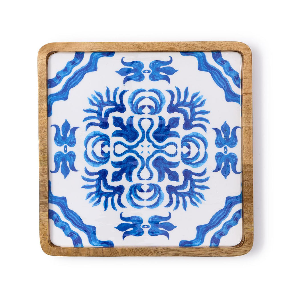 Hand-crafted with care, these trays showcase intricate tile-inspired designs on food-safe enamel. Transform your table setting with a touch of artisanal elegance with Two's Company Blue Tile Block Print Serving Trays. Made from mango wood, these trays are perfect for adding pop of color and style to any gathering.