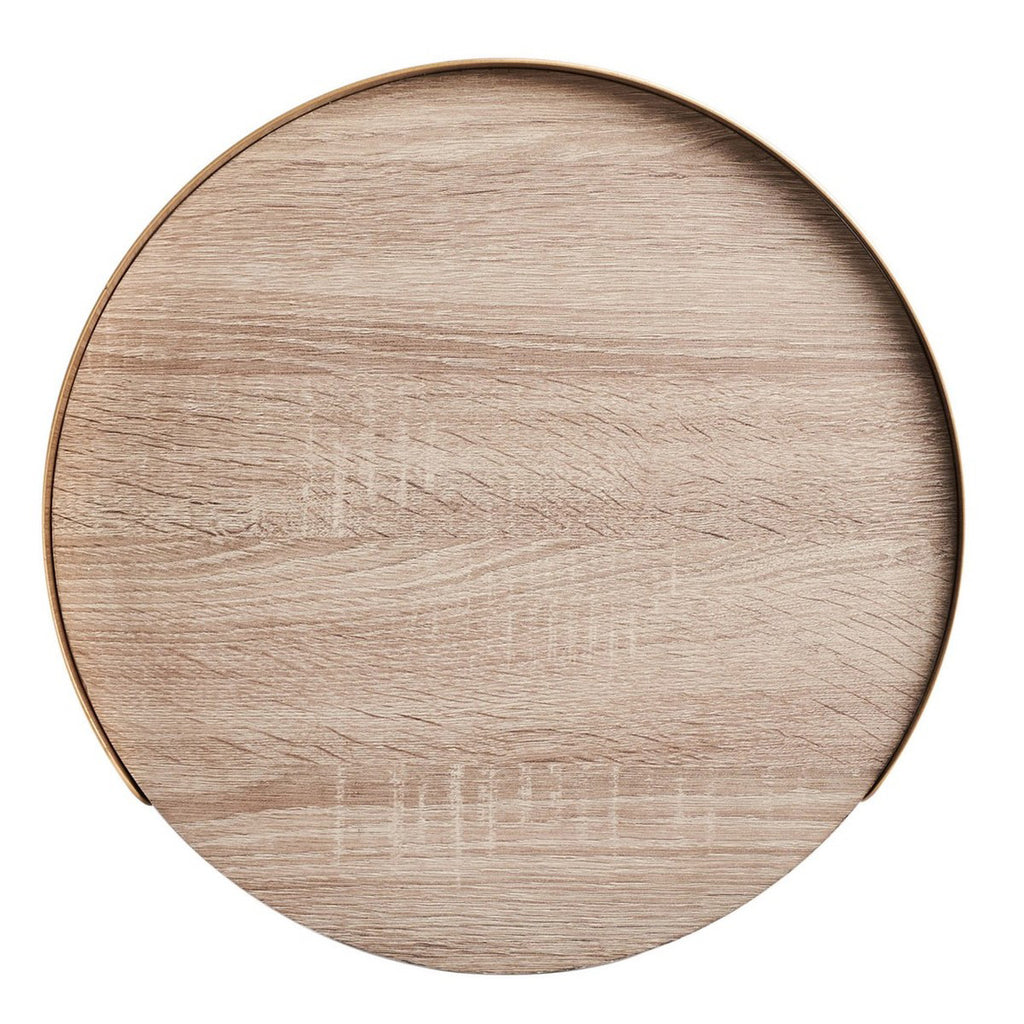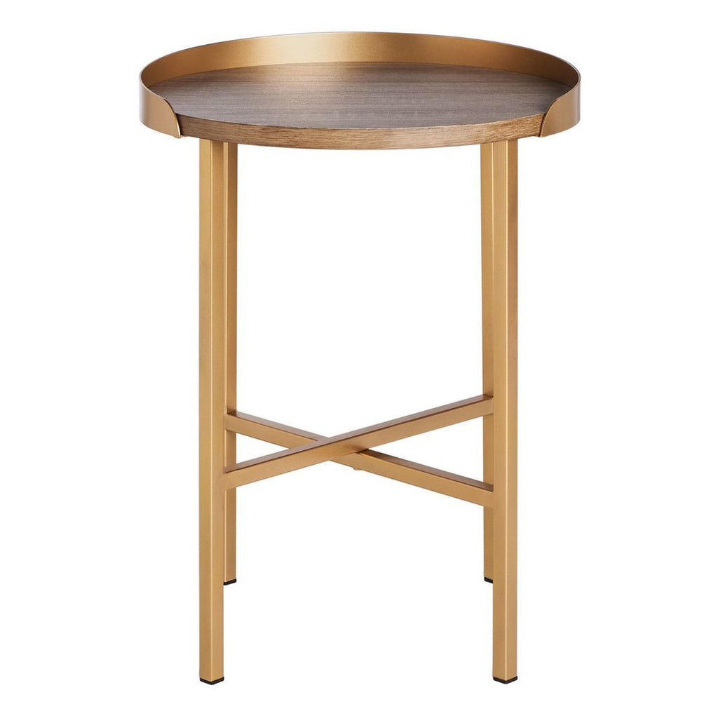 Iconic country charm meets modern mystique in this round side table. Pairing stylish geometry with the wood's organic allure, Prague’s gold raised tapered edges give its rustic light grey oak finish a subtle, glamorous touch. A crossed X base enhances the decorative depth.