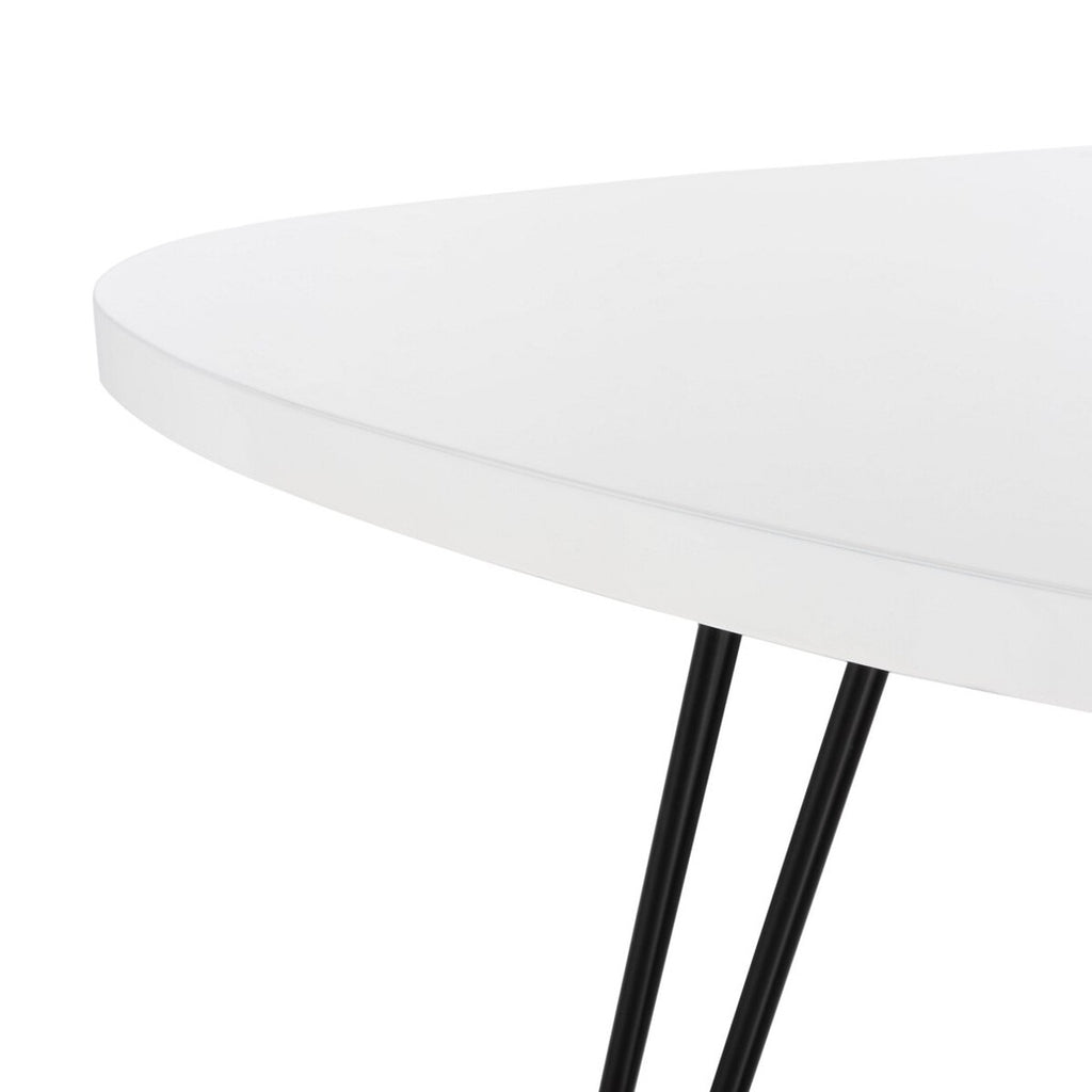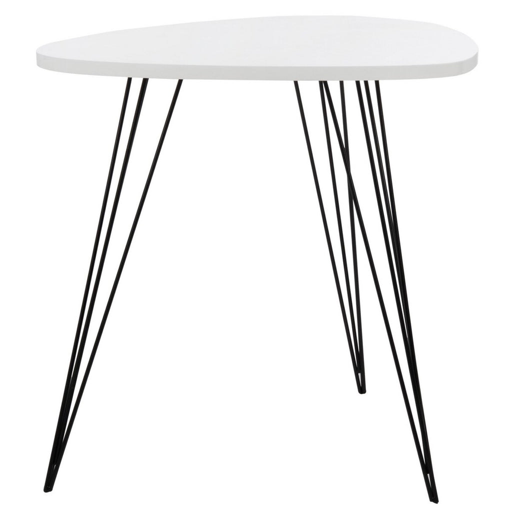 Rugged meets refined in this contemporary end table with sleek white lacquer top and sophisticated hairpin legs in black iron. Beside a sofa or armchair, this striking side table brings an open and airy look to a living room or bedroom.