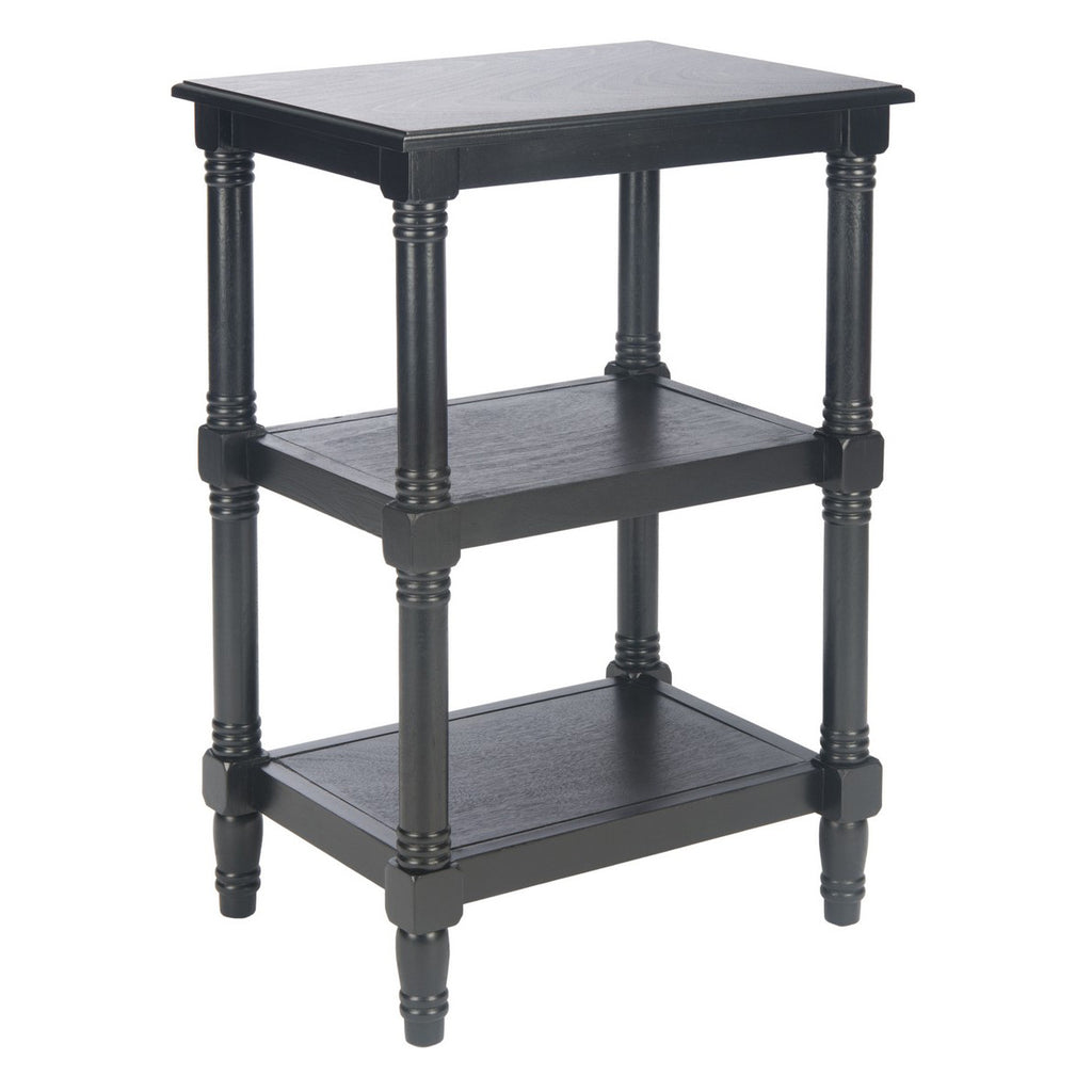 Maximize storage and style with this accent table. Featuring three smooth shelves perfect for displaying beloved heirlooms or trinkets from far off travels, the soft greige, black or brown finish and classically inspired frame make it the perfect fit in any décor.