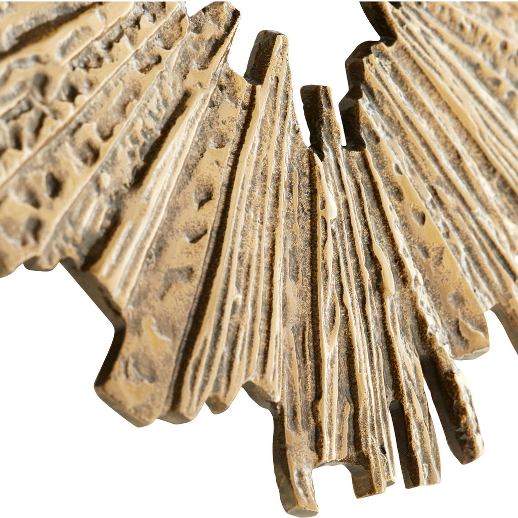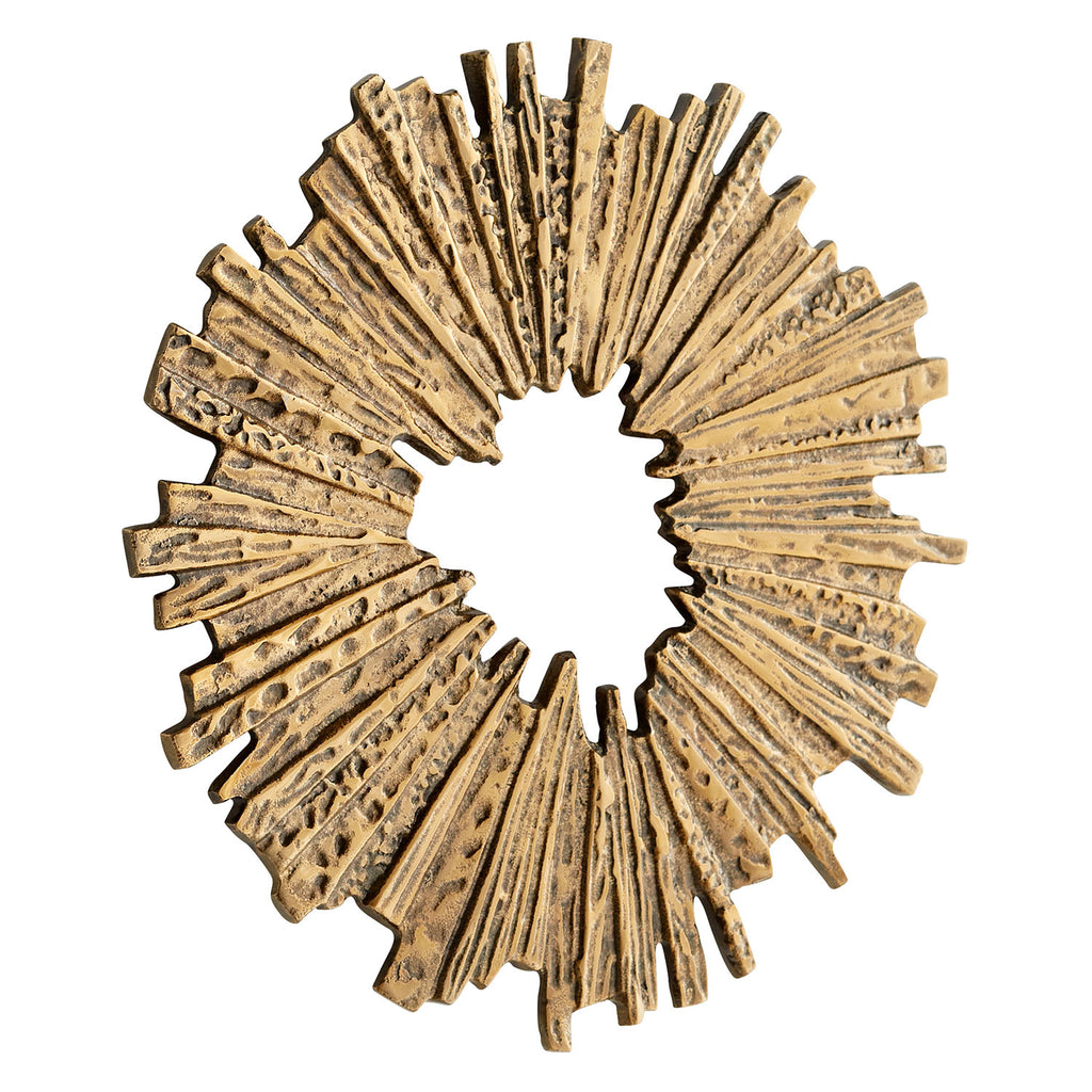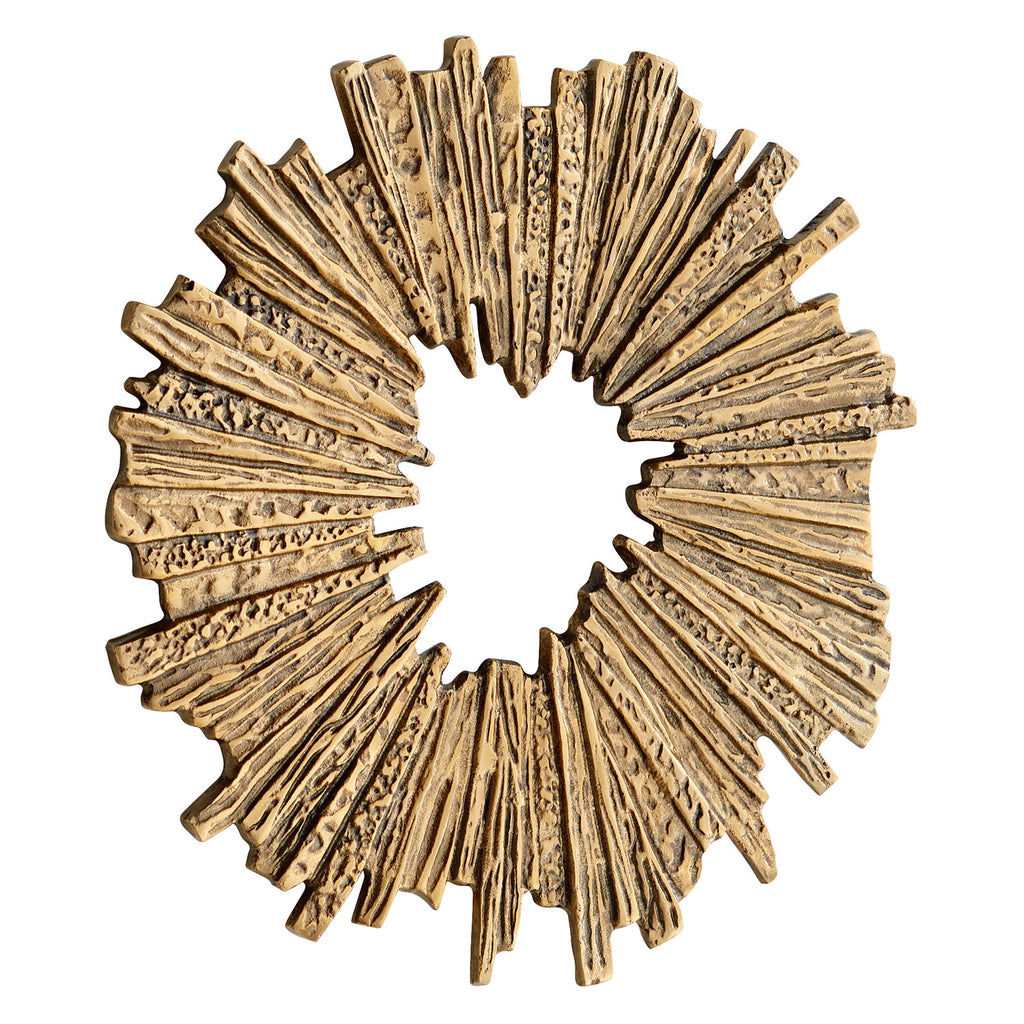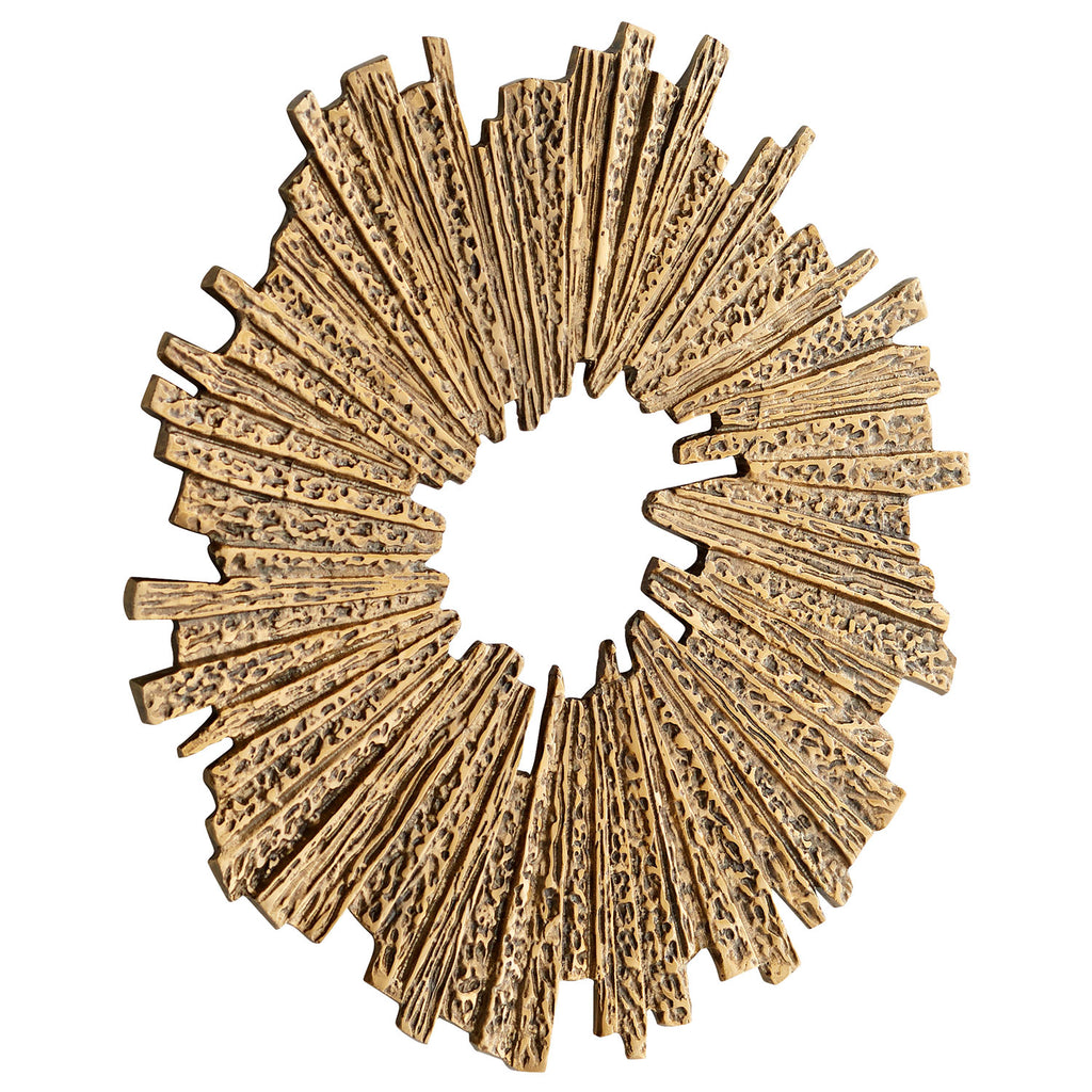 Lend an eclectic feel to your home or office with wood art from Cyan Design. Distinctive and versatile, this unique piece made from natural materials can be the inspiration for a room, or the finishing touch that perfects it. The Cyan Design Abra wall decor is fashioned in a circular form with rectangular and triangular individual pieces that make up the structure. This piece also features a unique opening at the center that makes it stand out from the background. This wall art design will instantly give any living room, entry way, dining room or office, or even bedroom a stylish, metallic flair.