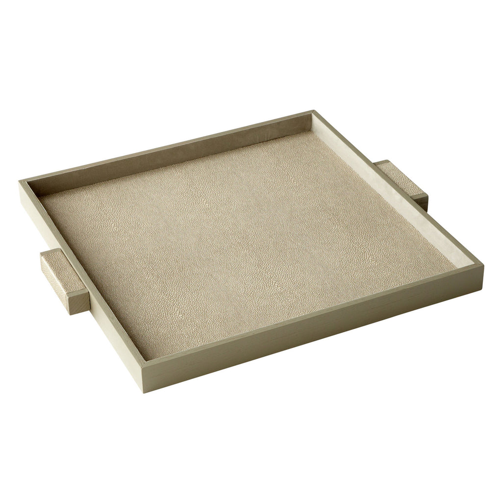 Give tabletops and shelves an eclectic boost with a decorative tray from Cyan Design. This unique storage tray décor offers versatility and function while meshing with your distinctive style. Varying textures from this shagreen tray create dimension in any living room. The contrast between the leather and wood add a modern upgrade to a simple silhouette.