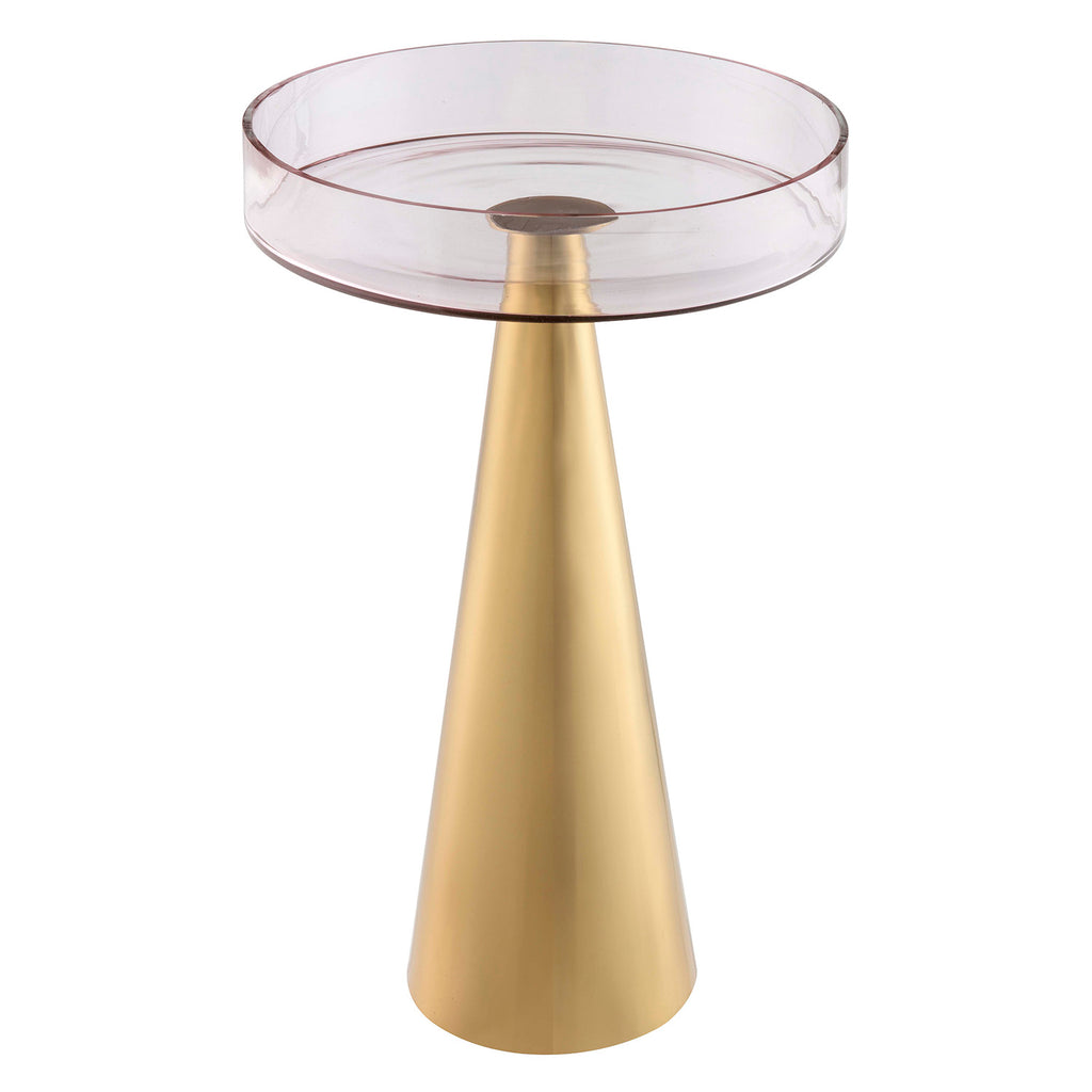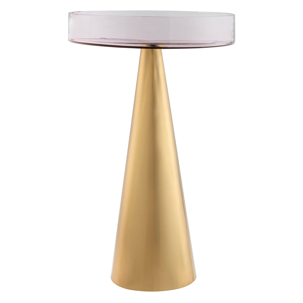 Compliment your space with the modern and stylish Denver side tables. Featuring a transparent pink glass perched upon a gold conical base, this table is an instant eye-catcher.