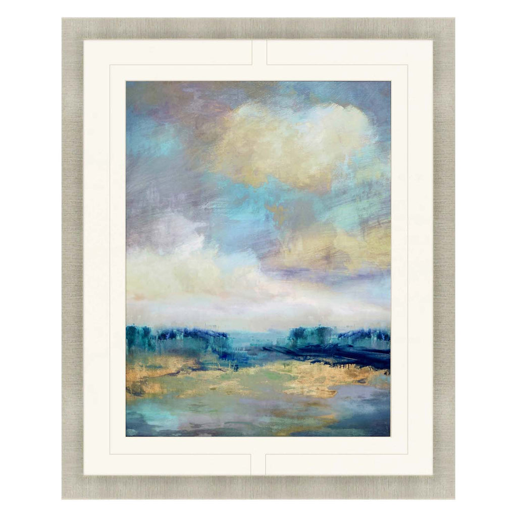 Luscious hues simmer in an ocean of color. Matted in white. Framed in a champagne gold finish molding.