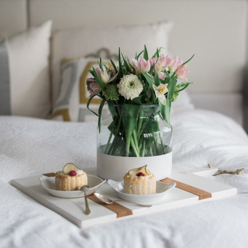 Part of our famed Spectrum Collection, these oversized reclaimed wood boards are your new go-to for all serving, hosting and decorative needs. For a modern spin, the serving board has been updated in a lively wax, a sure conversation starter. To ensure durability and timelessness, the wood platter is distinguished by two perfectly engineered strips of oak placed at ideal points to avoid the wood from warping. We like to use the wood tray to stack and pile our cheese, fruit, bread and charcuterie; however, if you are more into design over dining, the wood bread board can also be used as a decorative kitchen accent behind your stove or hung on the wall. This board is finished with a plant-based, food-safe hard wax. The eco-friendly wax nourishes the wood, eliminates odors and provides a protective barrier making it quick and easy to clean. etúHOME’s serving boards are intended for serving only and should not be used for cutting or chopping. To protect and preserve the integrity and longevity of the piece, we recommend using a barrier such as parchment paper, a plate or a bowl for non-dry and hot ingredients.