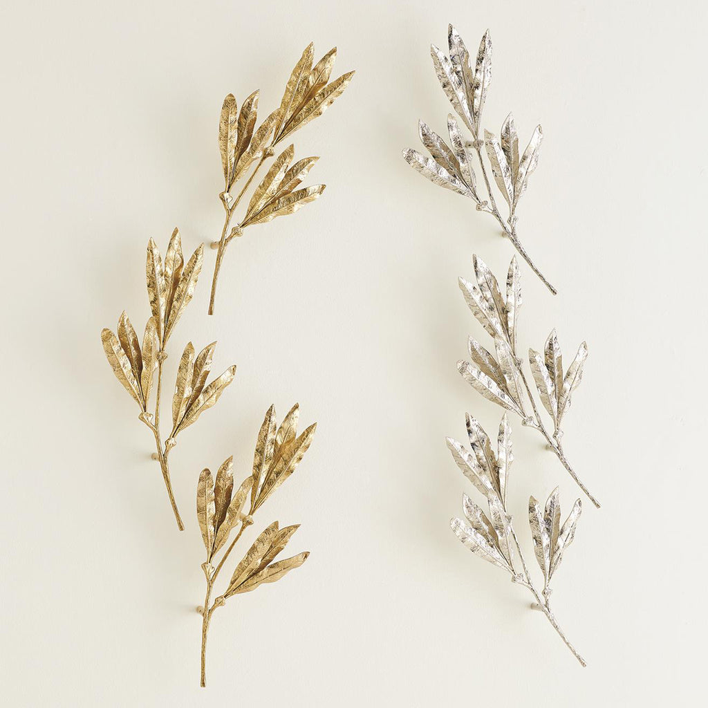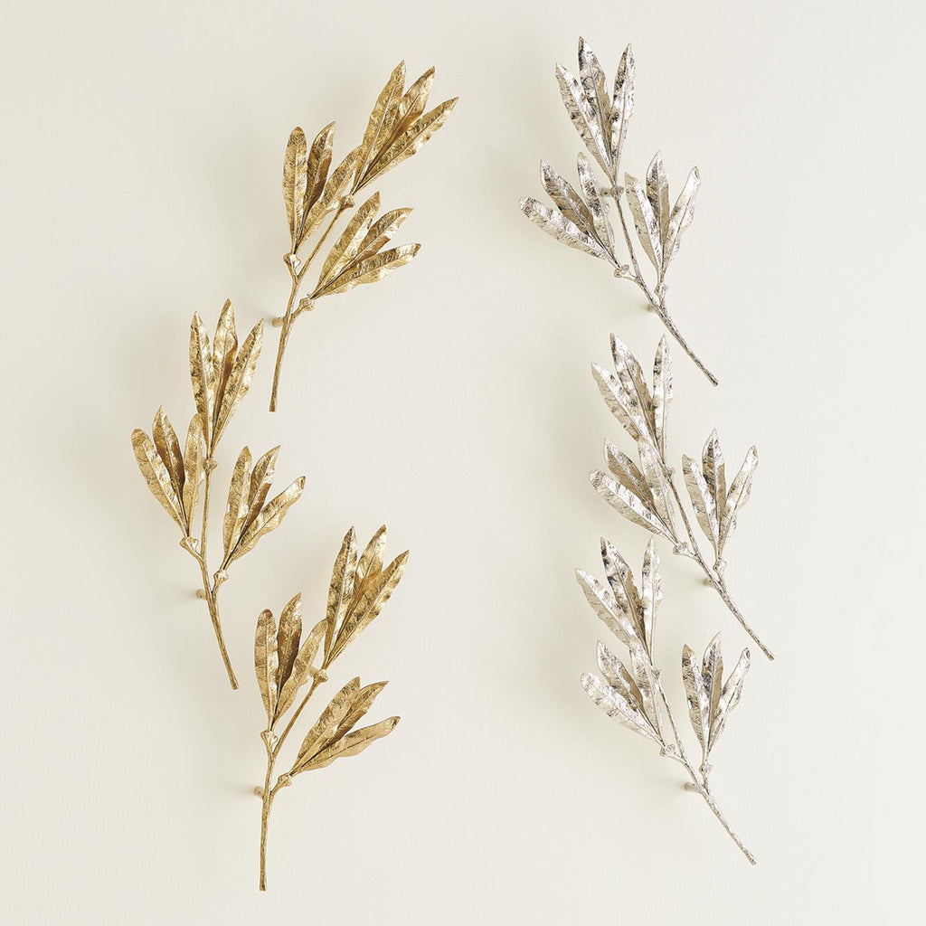 The Global Views Mango Leaves Wall Decor is made of solid cast brass. The original molds for the objects are live casted, meaning they were created from organic Mango leaves from trees in India.