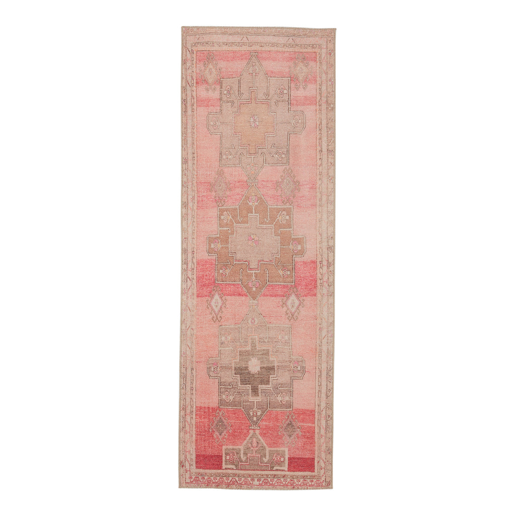 The vintage-inspired Kairos collection brings a playful and warm vibe to contemporary spaces. The Faron rug features tribal medallions in a pink, tan, and gray colorway, perfectly distressed for a boho-chic touch. This printed style offers the timelessness of a classic Turkish motif with the versatility and affordability of a power-loomed rug.