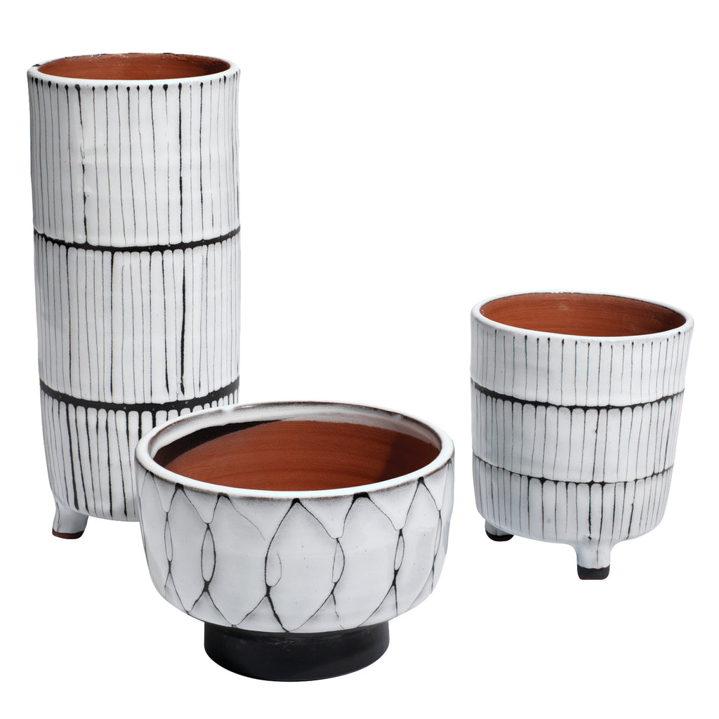 These decorative ceramics with the off white texture on the outside and terra cotta inside create beautiful handmade accents for your home.