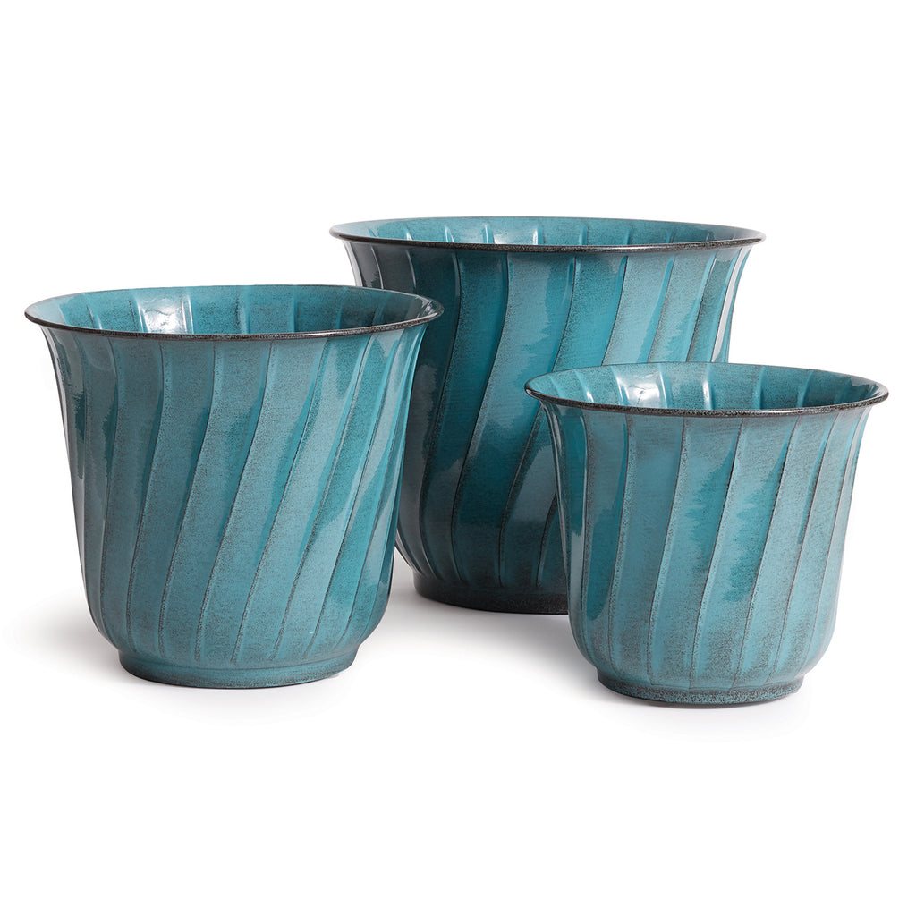 Made of a durable metal, glazed and baked at 300 degrees, so they are able to withstand the elements in the extreme. With a dynamic, antiqued enamel-like coating. Perfect for well, the Terrace!