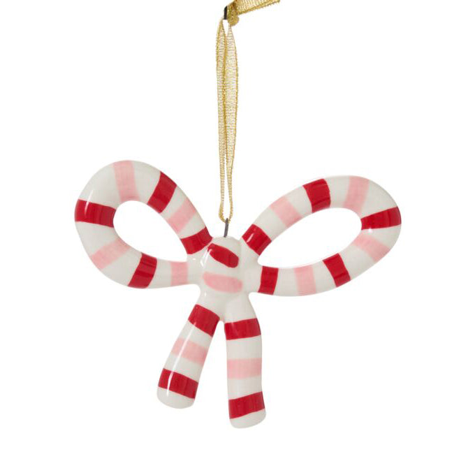 Trim the tree in festive style with the Metallic Bow Ornament, a lightweight glass holiday bow in shiny silver. Perfectly tied and trimmed in glitter, hang several of these all over the tree for a statement bow look, or add to fresh garland as a pop of color on the mantle. Mix all three of these classic metallic hues together or feature them in color blocked displays for the season.