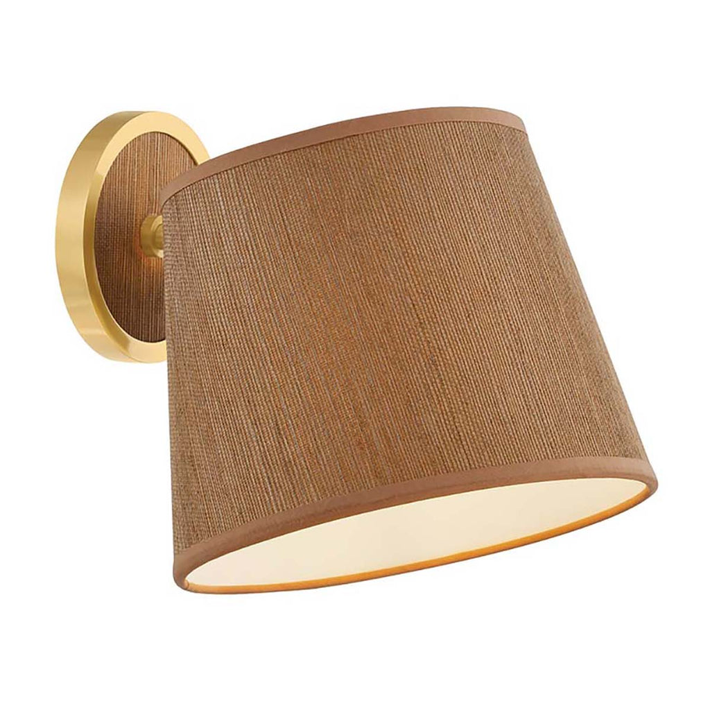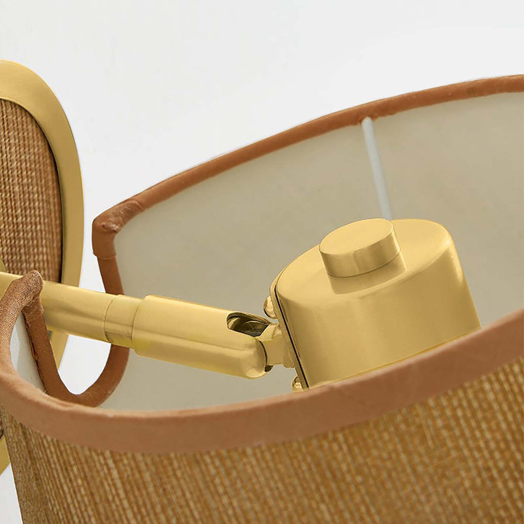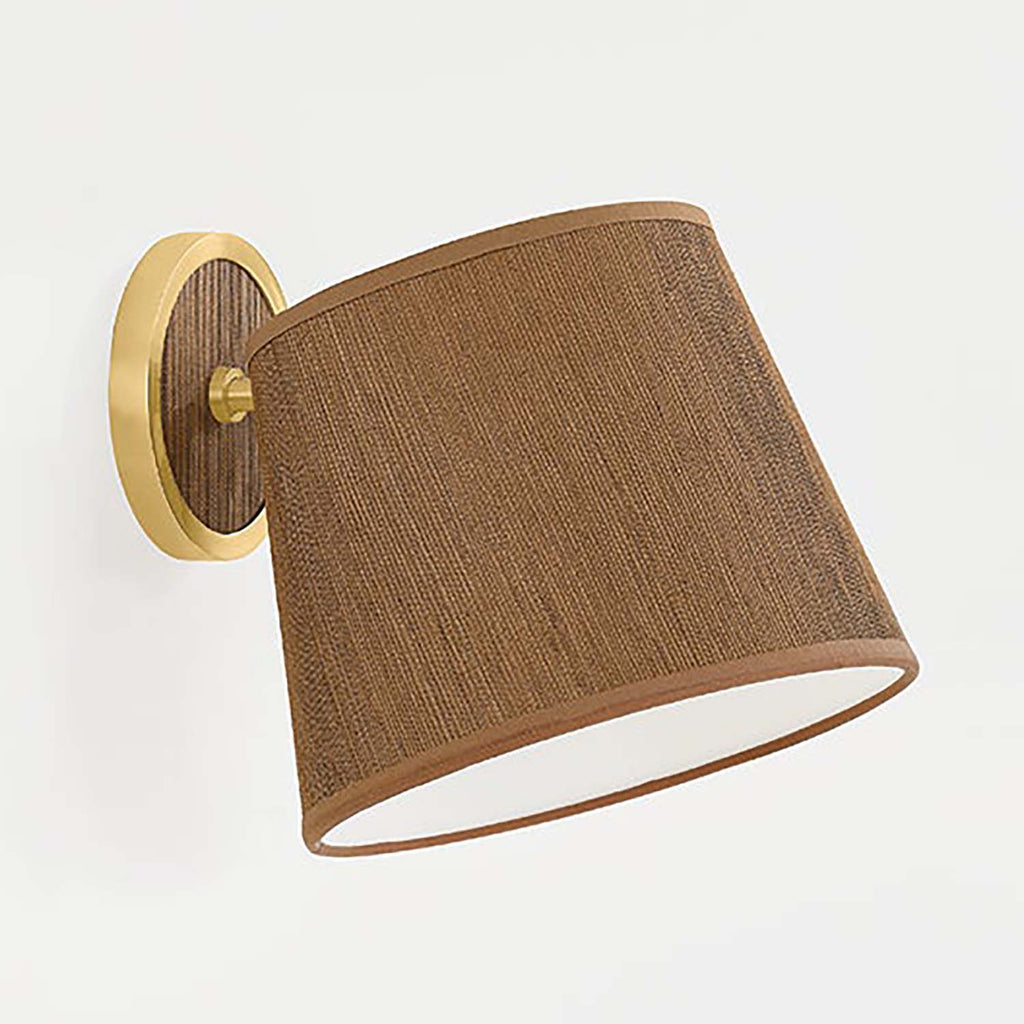 Responding to the seasonal trend for tactile, blond naturals, the Mitzi Abeni sconce makes use of woven grasscloth on both its shade and backplate. The oversized proportions and rustic materiality give this sconce a casual feel while the Aged Brass accents lend a luxe note. The head of Abeni pivots for use as directional light at the bedside.