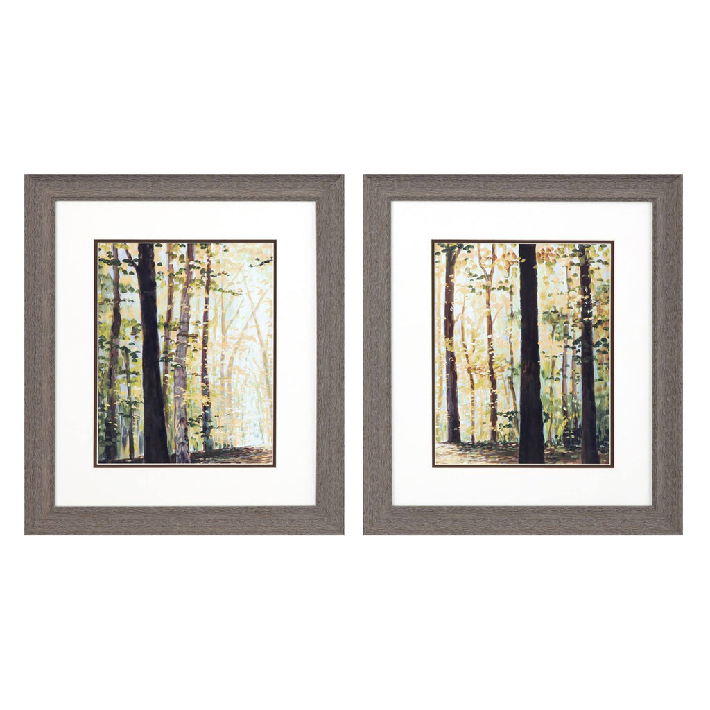 A set of two coastal palm leaf images accentuated with heavy matting. These pieces are framed under glass and paired with a white wash frame.