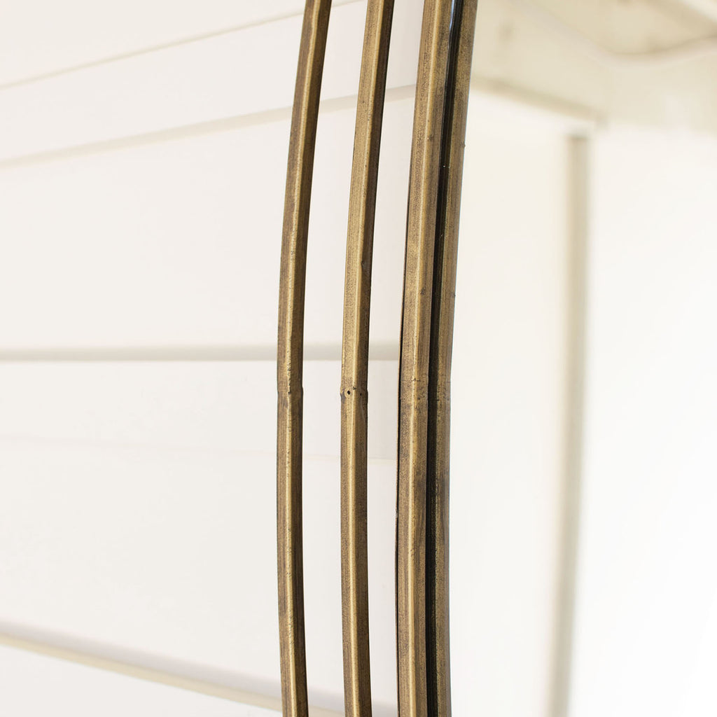 Add this oval to your collection. This antique brass mirror has a layered look and a hanging hook for added sophistication. Perfect for a bedroom mirror or any space that needs a touch of light.