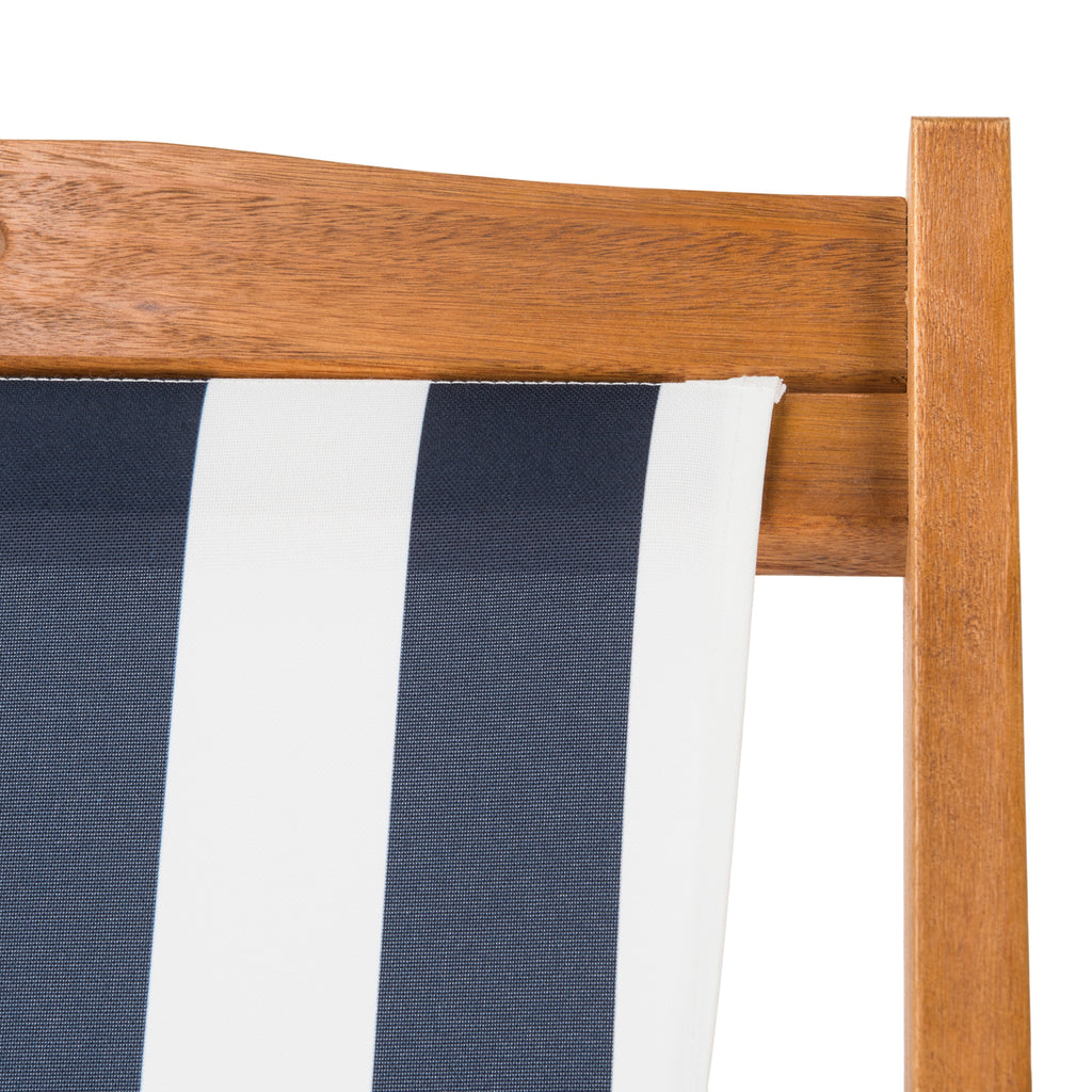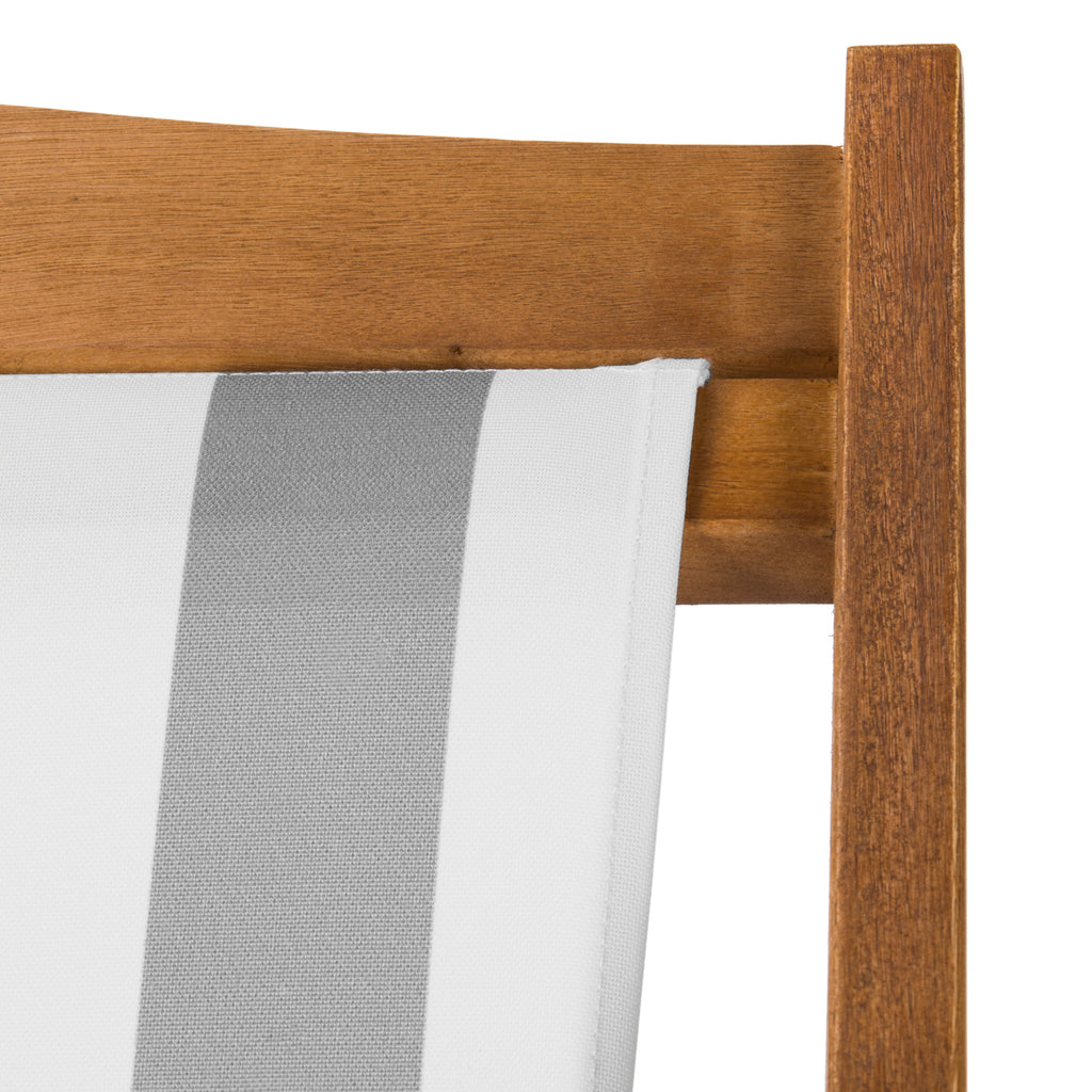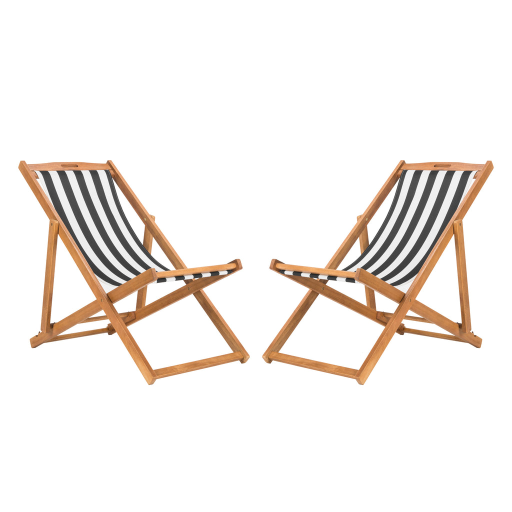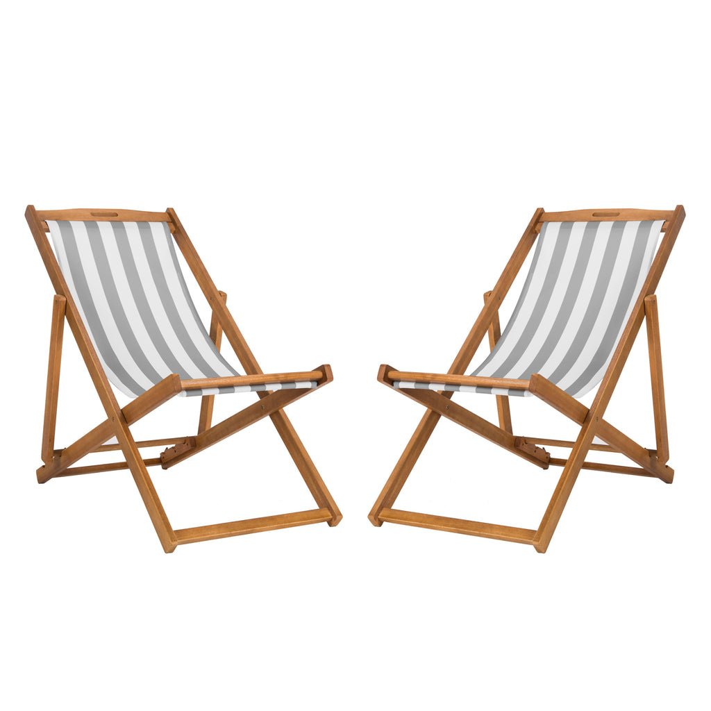 Relax and unwind with these contemporary foldable sling chairs. Crafted with the strength of galvanized steel and eucalyptus wood, it features a beautiful oiled natural finish that only gets better with age. Its chic striped seats make it a designer favorite.