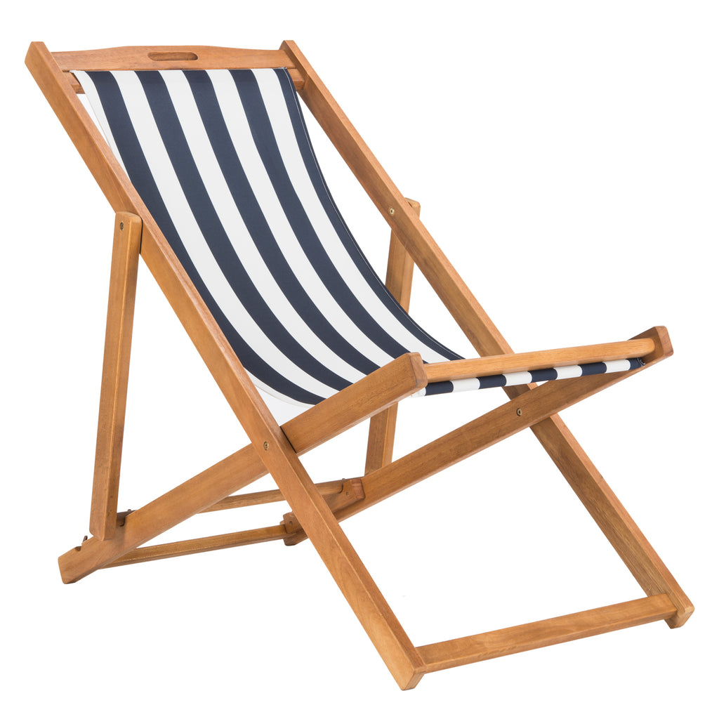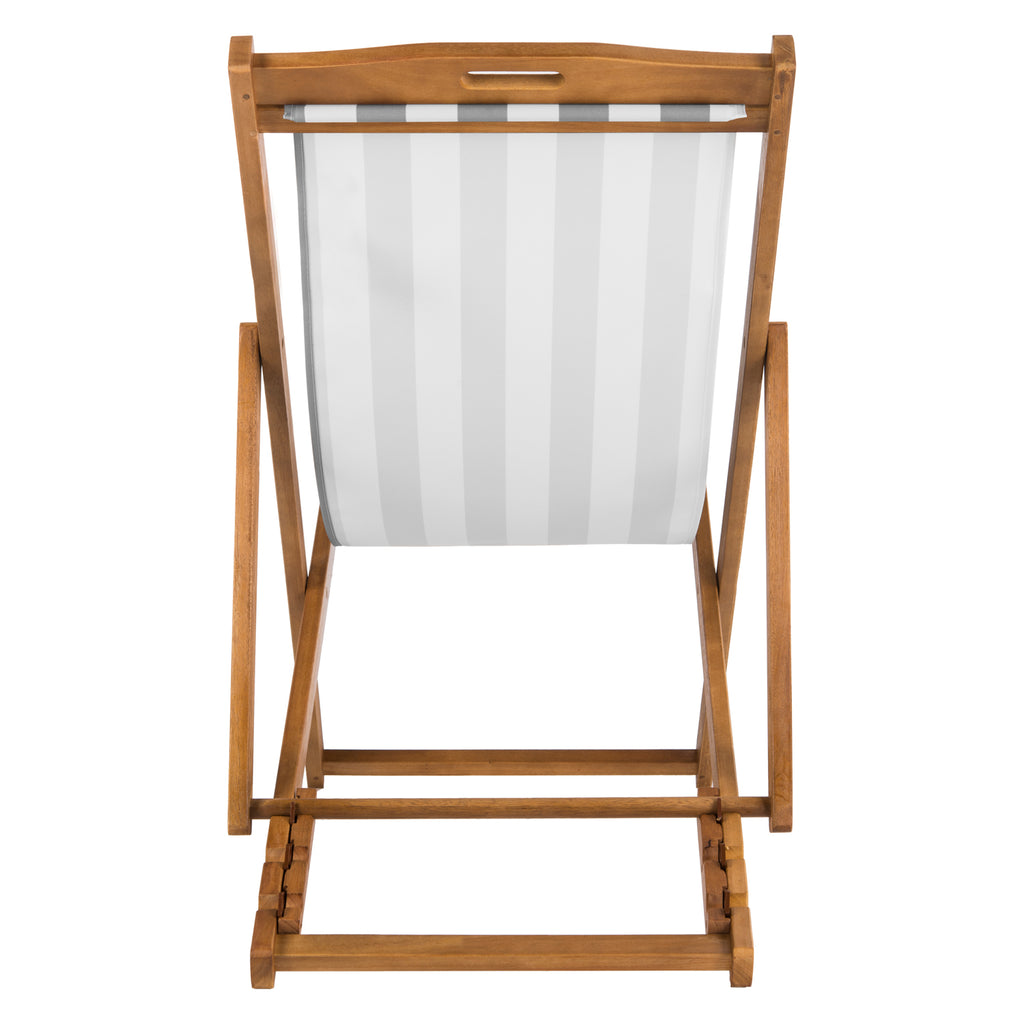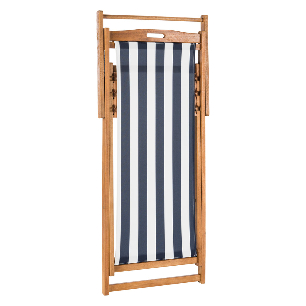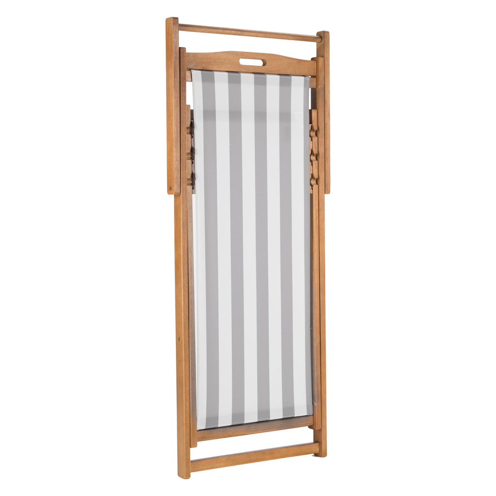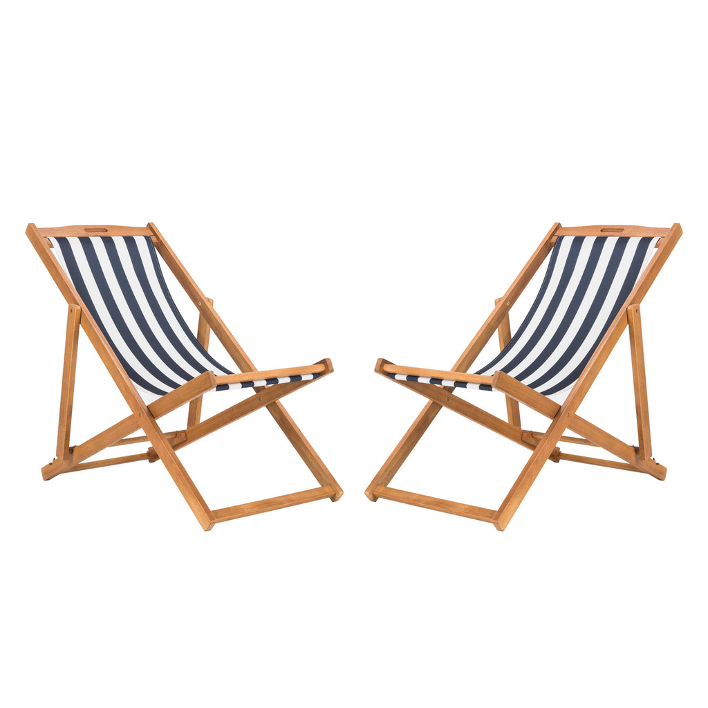 Relax and unwind with these contemporary foldable sling chairs. Crafted with the strength of galvanized steel and eucalyptus wood, it features a beautiful oiled natural finish that only gets better with age. Its chic striped seats make it a designer favorite.