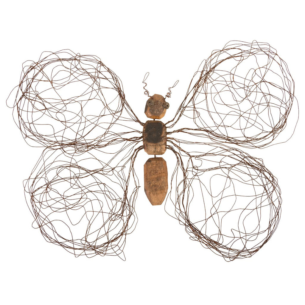 The Wire Wing Butterfly Wall Art has been hand-carved from blocks of recycled wood by a single Thai artisan. By simply adding artful squiggles of metal wire, these blocks of wood are transformed into adorable pieces of wall art. It is remarkable how such mundane materials can be given such a lively personality by the vision of an individual expressing whimsy.