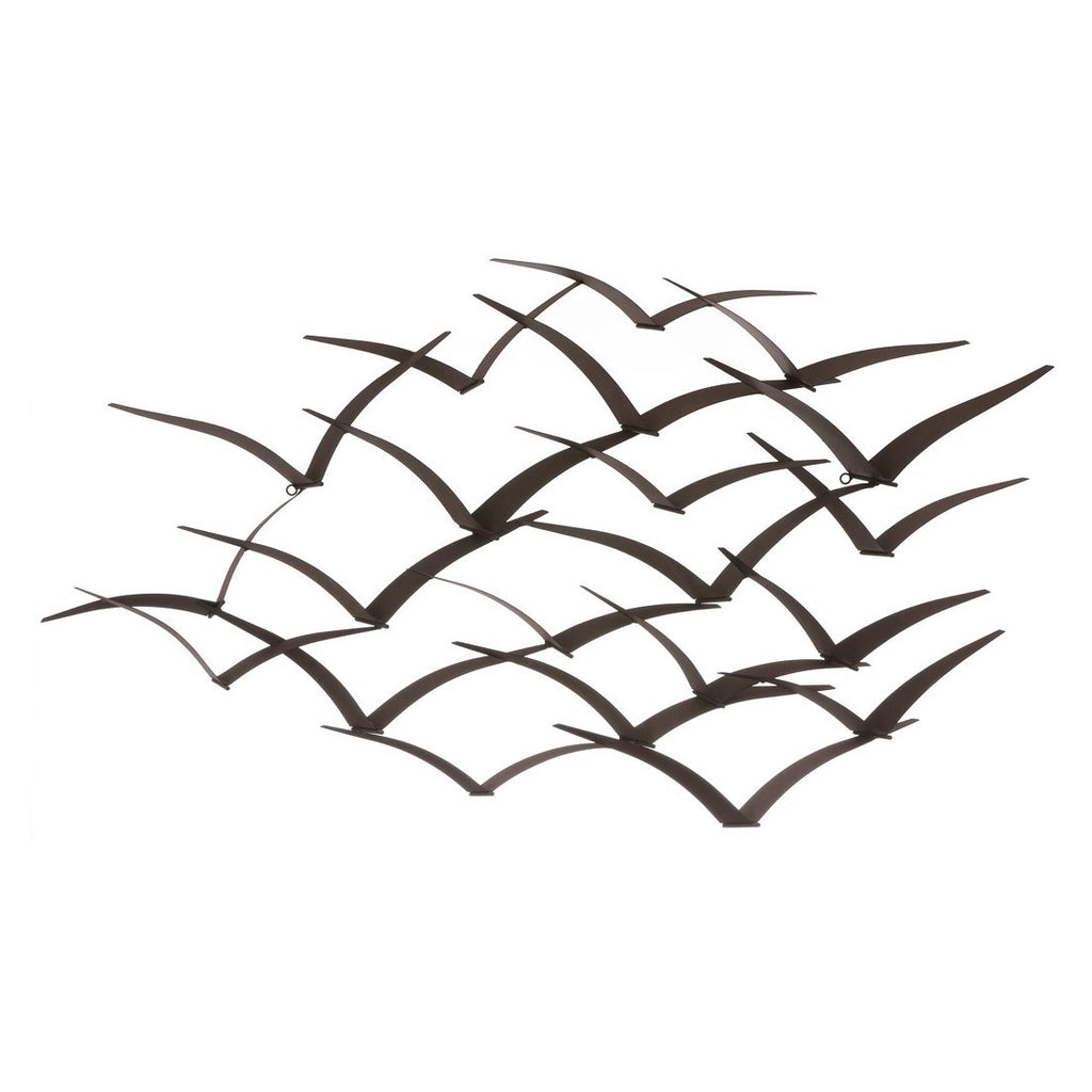 Designed after the iconic, heavily stylized silhouettes of birds heading south for winter, this metal wall decor flies into any room with artistic, eclectic elegance. The bronze finish and eye-catching negative space makes it the perfect centerpiece in a hall, entryway, or expansive living room.