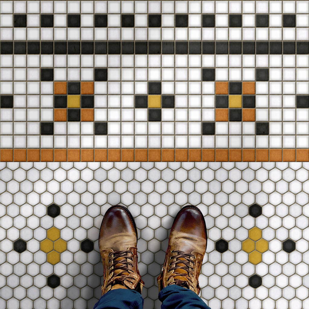 The Rawson Street vinyl floor cloth from the Mosaic F collection was inspired by vintage linoleum. Perfect for kitchens, baths, screened in porches and patios, the durable vinyl floorcloths are easy to clean and always lay flat. Vinyl floorcloths are made with two-ply vinyl with latex padded backing, designed to be fade-resistant in direct sunlight and durable against the elements but work best in controlled outdoor environments.