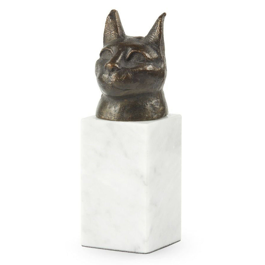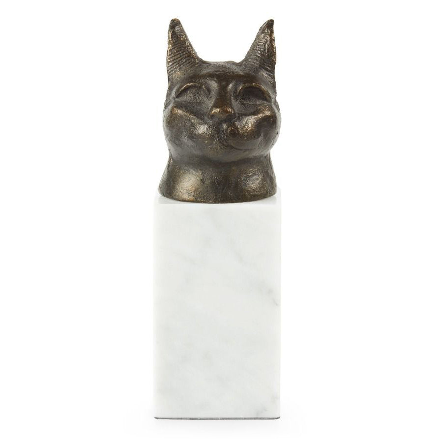 Paying homage to Egyptian mummified cats, the Bastet Statue holds serious intrigue. With captivating hollowed eyes and a bronze finish, the Bastet feels like an antiquity. It's named after the best-known feline goddess from Egypt. Capture that energy with a pair of Bastet Statues for your bookends, place one on your desk as a decorative accessory, or include it in an assortment of precious objects.