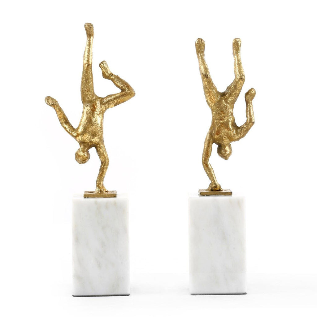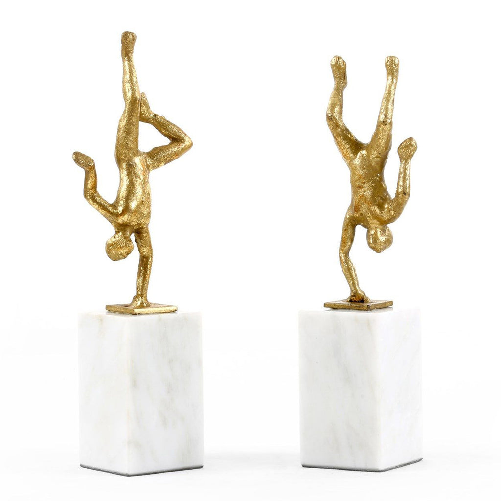The V&H Handstand sculpture depicts a pair of acrobatic pantomimes executing one-handed handstands with the playful energy of street performers. These tumblers conjure the human condition, dreams and emotions with aestheticized body language that helps us see and hear the invisible. They use the body alone to communicate feelings that are as fleeting as they are recognizable. Hand texturing on a smooth impasto surface.