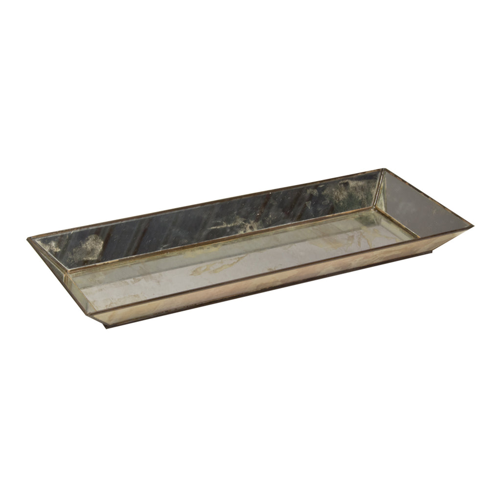 A classic, rectangular tray with antique mirror insets in a faceted frame. A perfect accent piece by itself or beautifully styled on your nightstand or console.