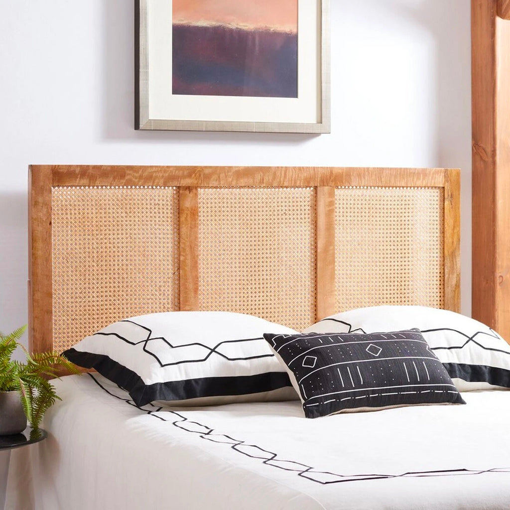 This modern cane headboard brings a breezy, tropical feel to contemporary bedroom décor with its stylish mango wood rattan good-looks. The natural or white wash finish is an apt complement to its cane construction, transforming bedroom decor into a calming, relaxed oasis.