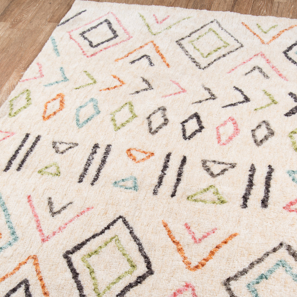 Happiness shines through this collection of brightly colored, defined geometric designs juxtaposed against super soft, extra plush area rugs.