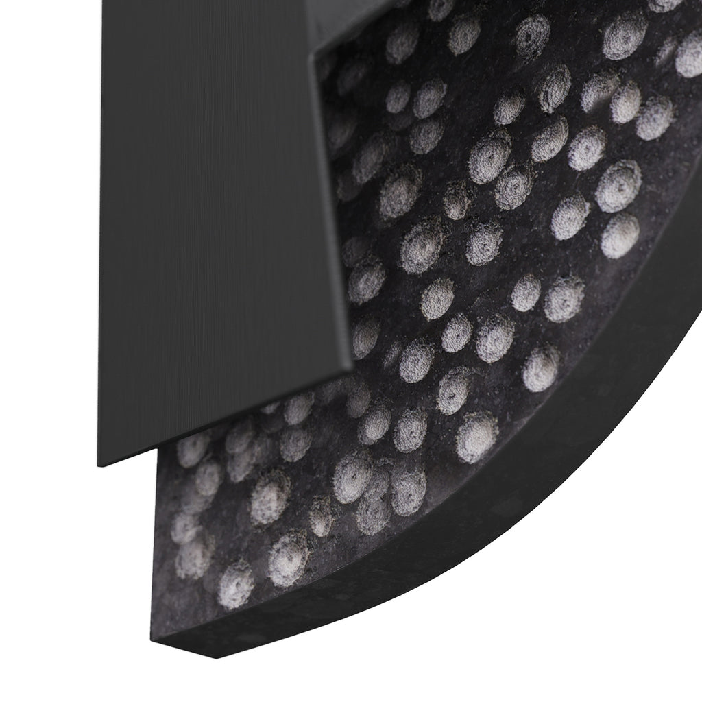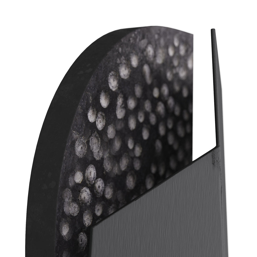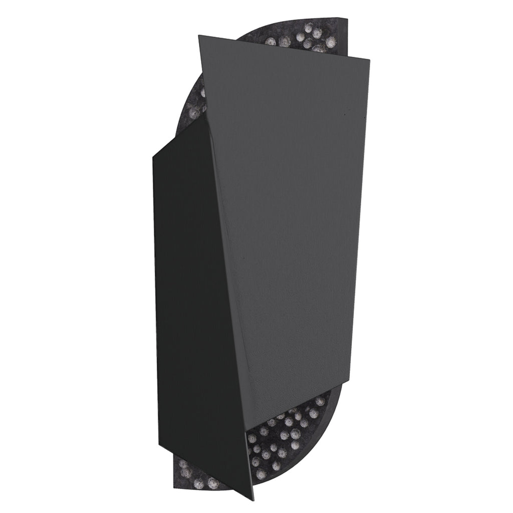 Playful intersecting planes of waxed blackened iron and black chiseled marble make an eye-catching mix in this modern sconce. Making the most of its intriguing lattice surface, it is designed so that light will reflect off the chiseled marble surface, delivering a soft and moody glow to any space. Damp-rated, although limited covered outdoor conditions may affect finish. Finish will vary.