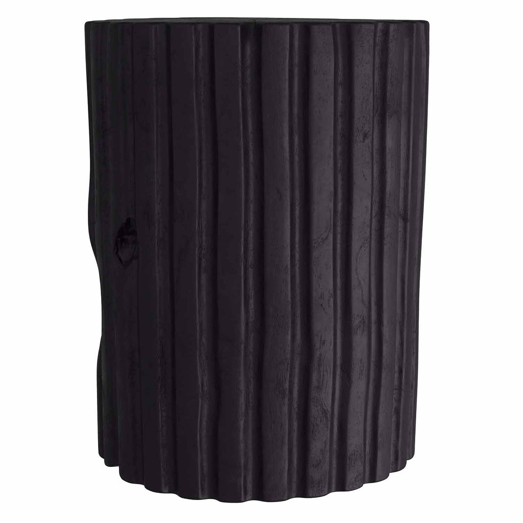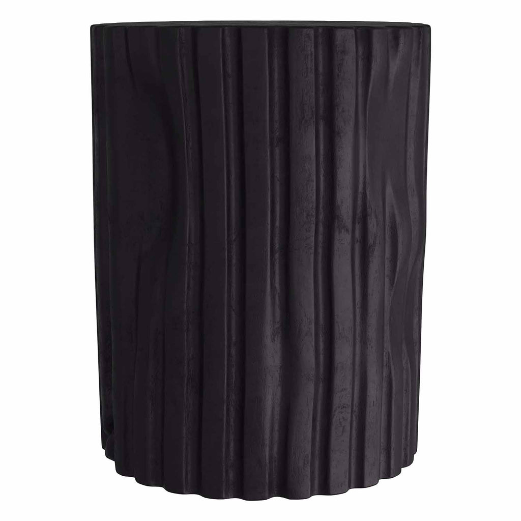 Earthy and elegant, the Arteriors Wilbur side table is designed with fluting reminiscent of columns. Hand-carved in solid, ebony teak root, the organic accent displays gauged features—indicative of the natural beauty of the material—lending a stump-like, found-object sensibility. Finish will vary.