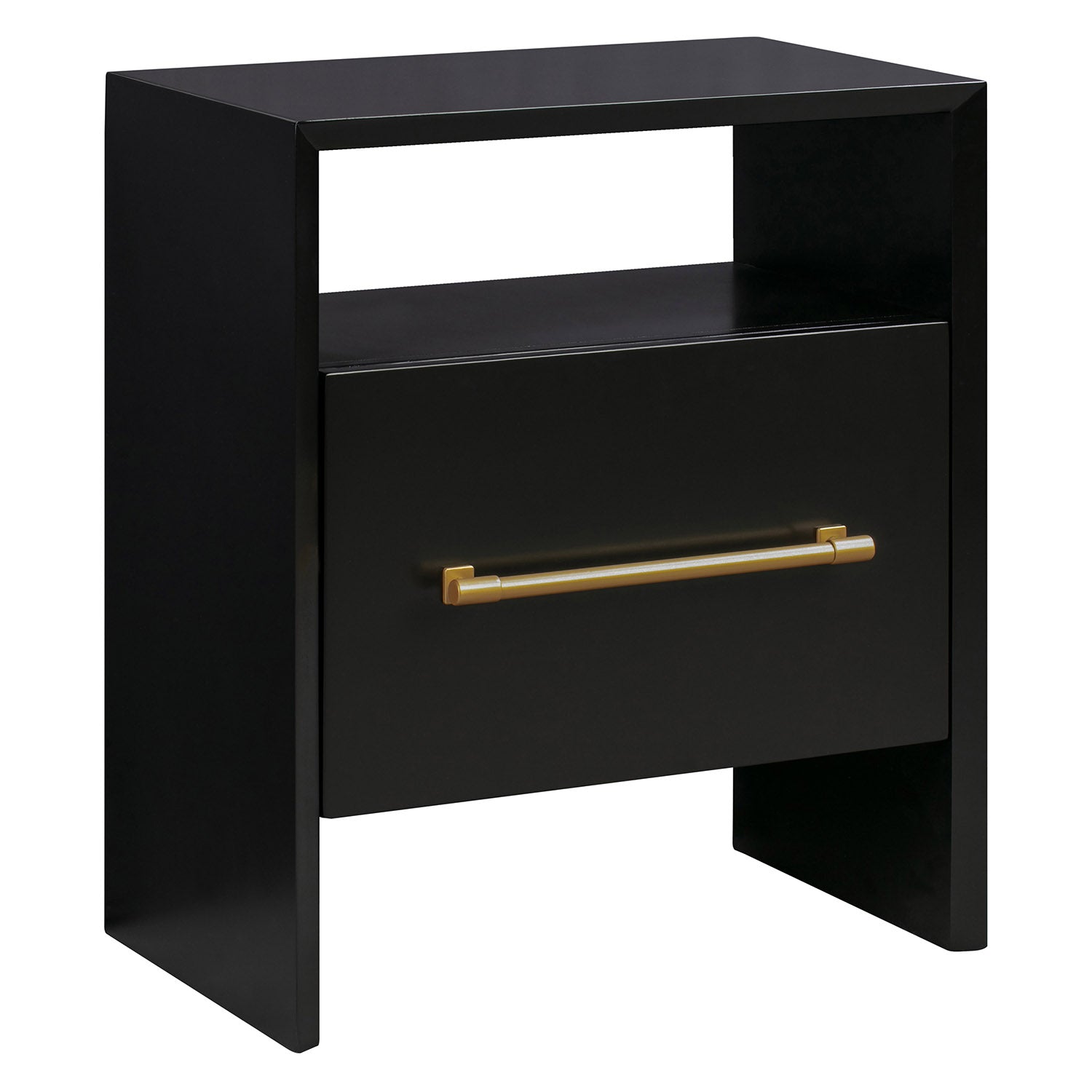 Stunning in its simplicity, this clean-lined nightstand modern appeal and stylish functionality. One drawer and a shelf above provide ample bedside storage.