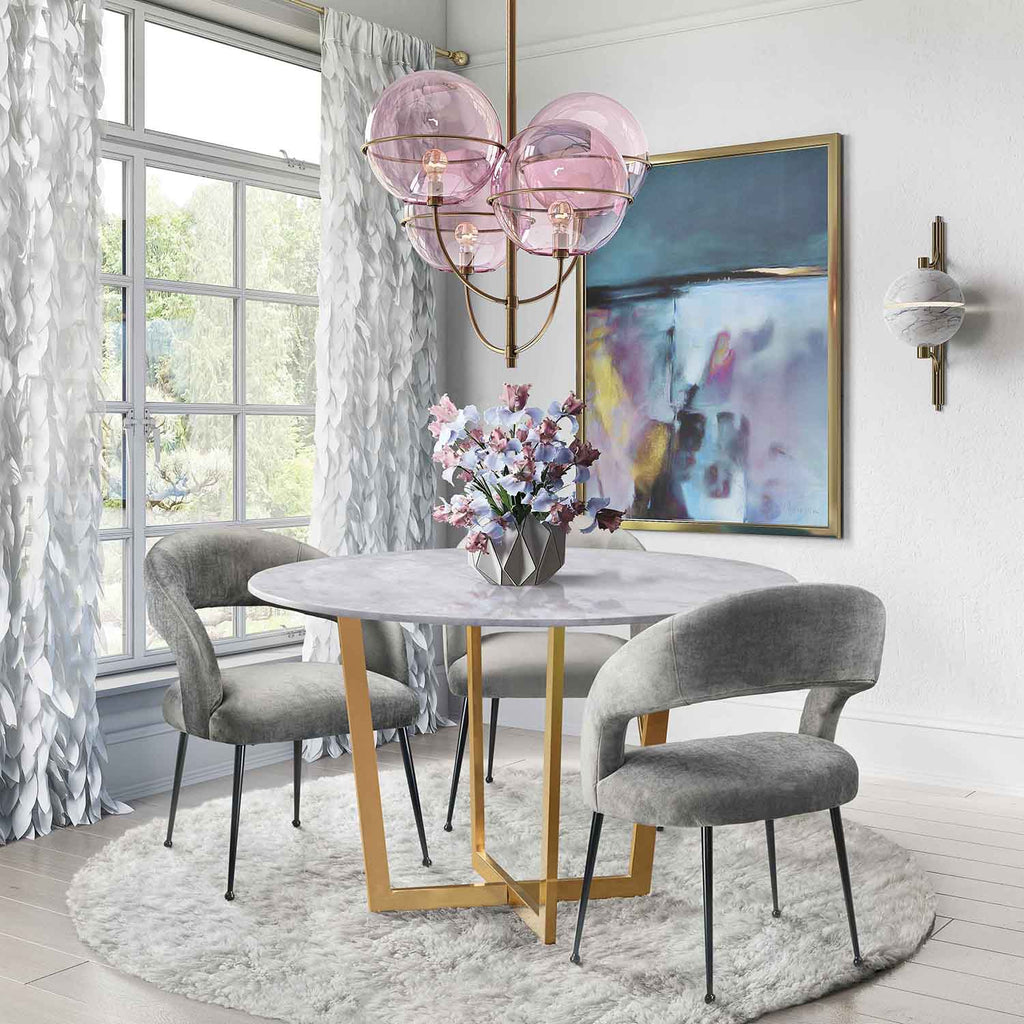 Mid Century Modern meets Hollywood Glam to form the striking Briggs dining chair. Boasting lavishly soft velvet upholstery and stylish stainless steel legs, this versatile chair will enhance any dining area. Available in several color options, the Rocco compliments our Maxim dining table beautifully.