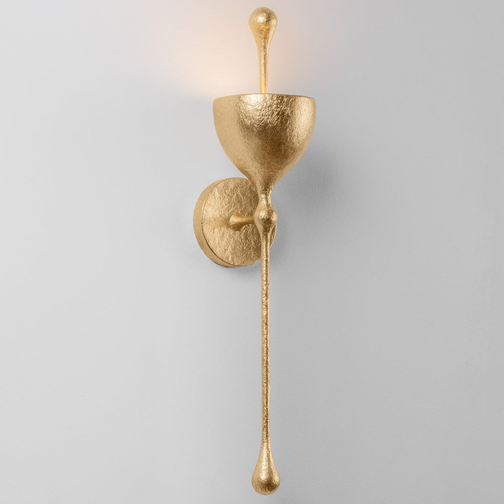 Drawing inspiration from the geometric patterns of Turkish tiles, this LED fixture merges high-concept design with otherworldly beauty. Long biomorphic stems support inverted bowl shades that direct light upwards. Available as a sconce or lantern in two sizes with the choice of a fresh Gesso White or luxurious Vintage Gold Leaf finish.