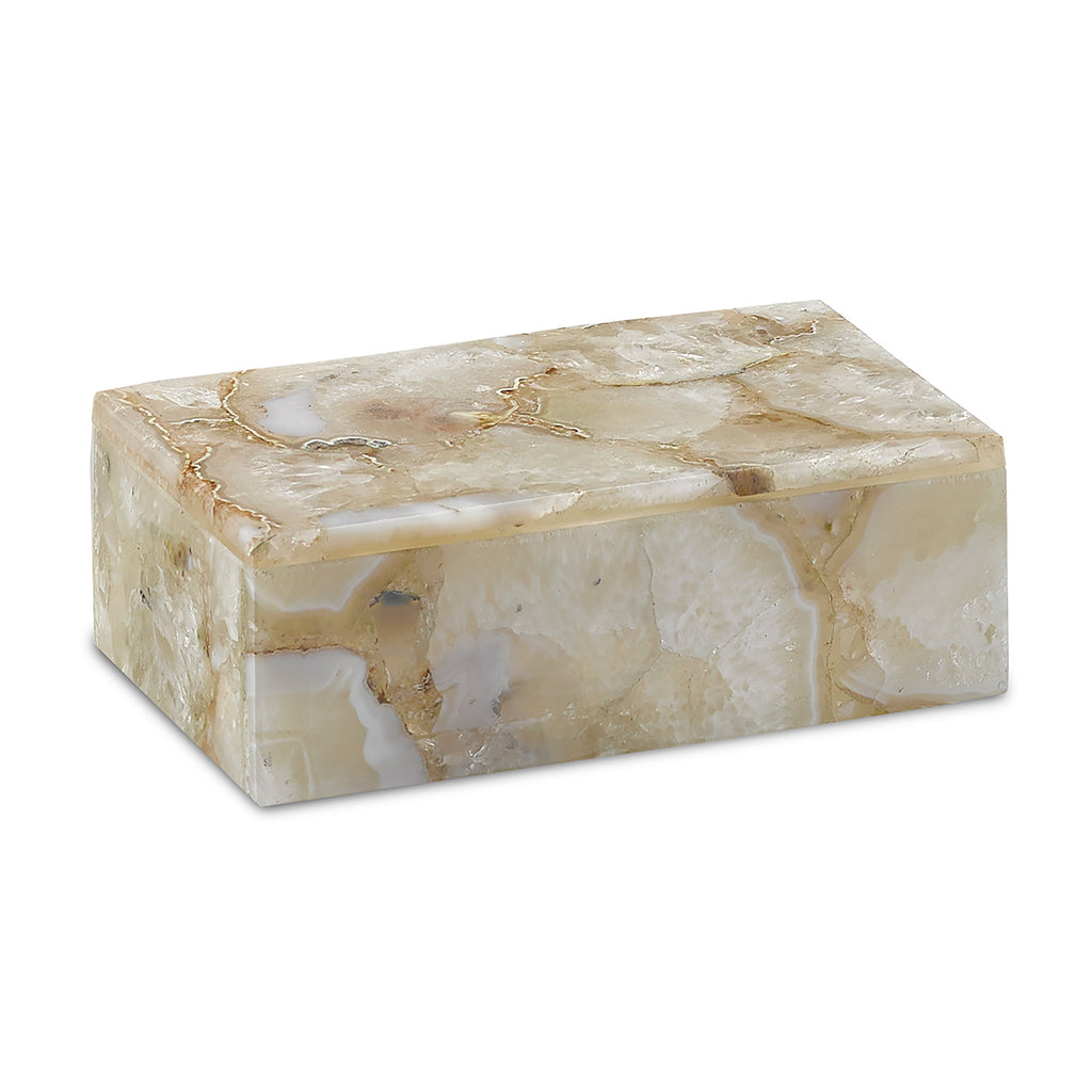 Made of natural agate, the Currey & Company Benoit Box is a clean-lined design with a snug fitting top in natural stone patterning. Pair together the small and large boxes to see how they stack so beautifully.