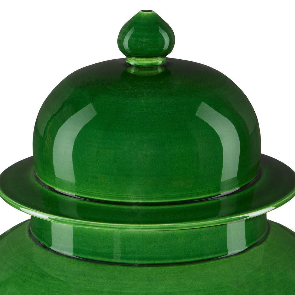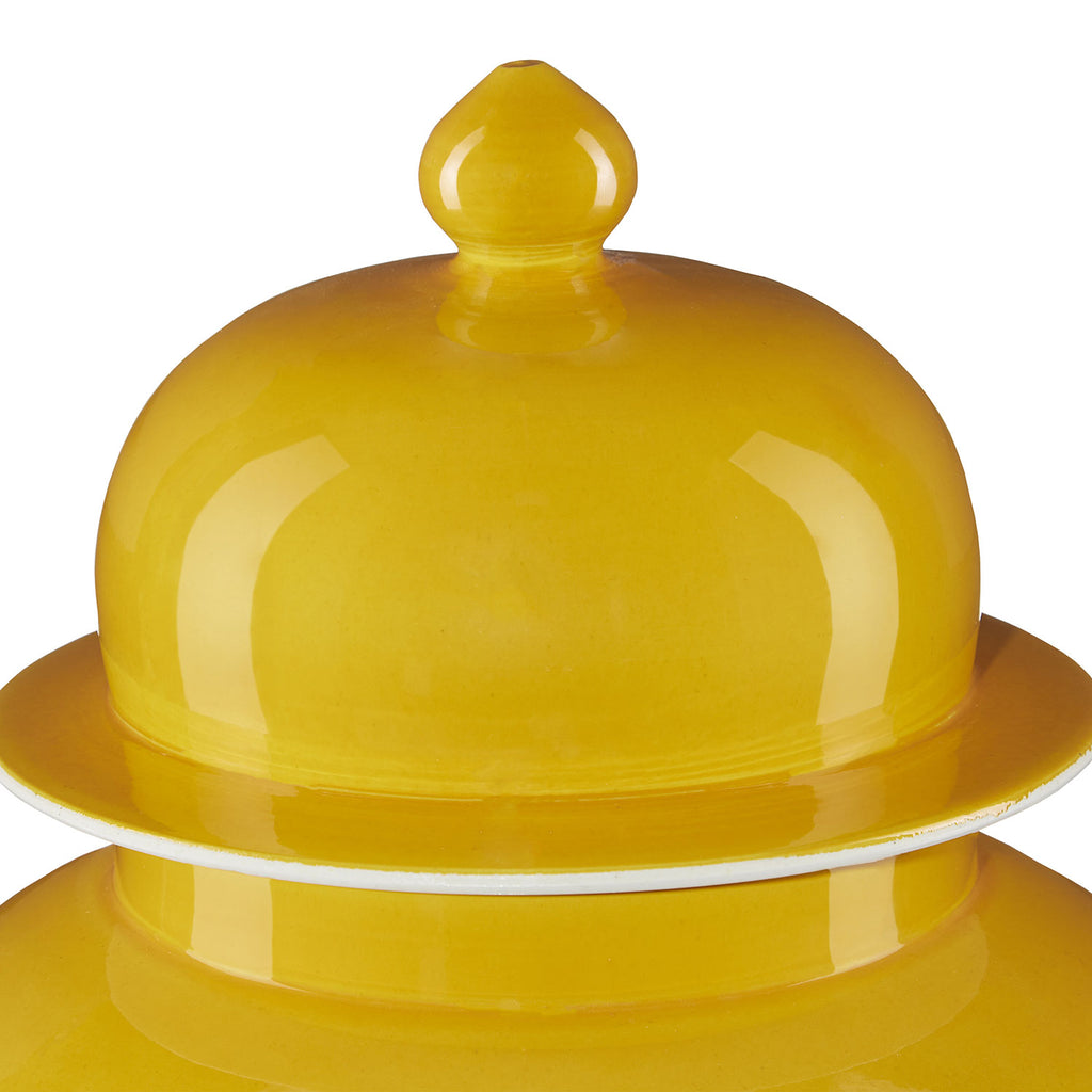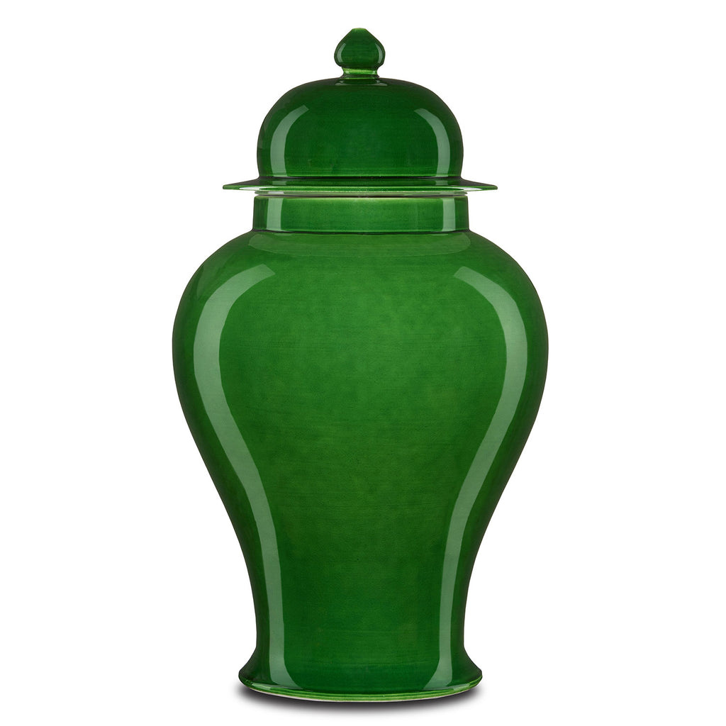 The Currey & Co Imperial Temple Jar is a decorative jar that has its roots far in the past. The Imperial label is apropos for the porcelain jar because this piece is made of clay sourced from the area surrounding the kilns that produced objects for the Imperial estate during the heyday of the dynasties. The formulas to achieve the particular color on this jar’s surface is a secret one guarded by ceramicist families devoted to the single color. The glossy, rich green was originally produced exclusively for those in high society and the bright yellow was originally produced to represent the Emperor in the Forbidden City.