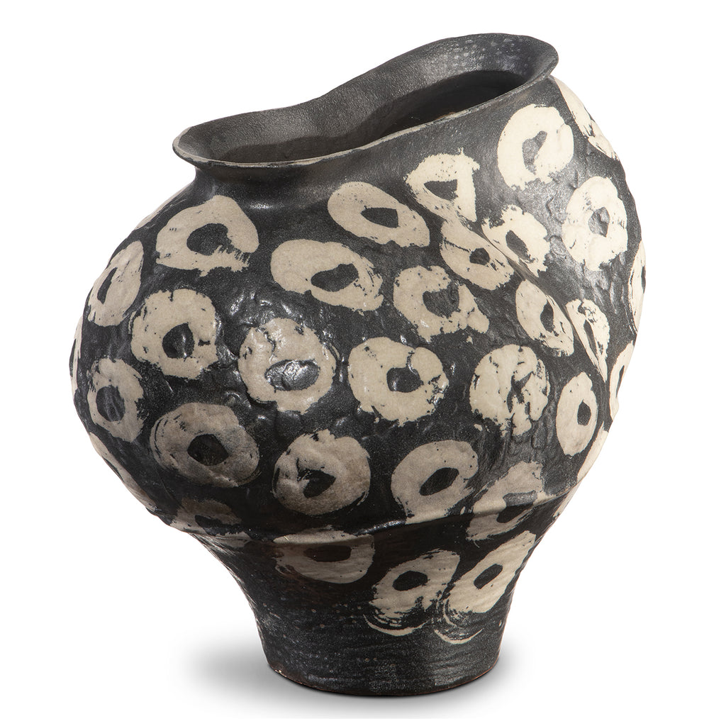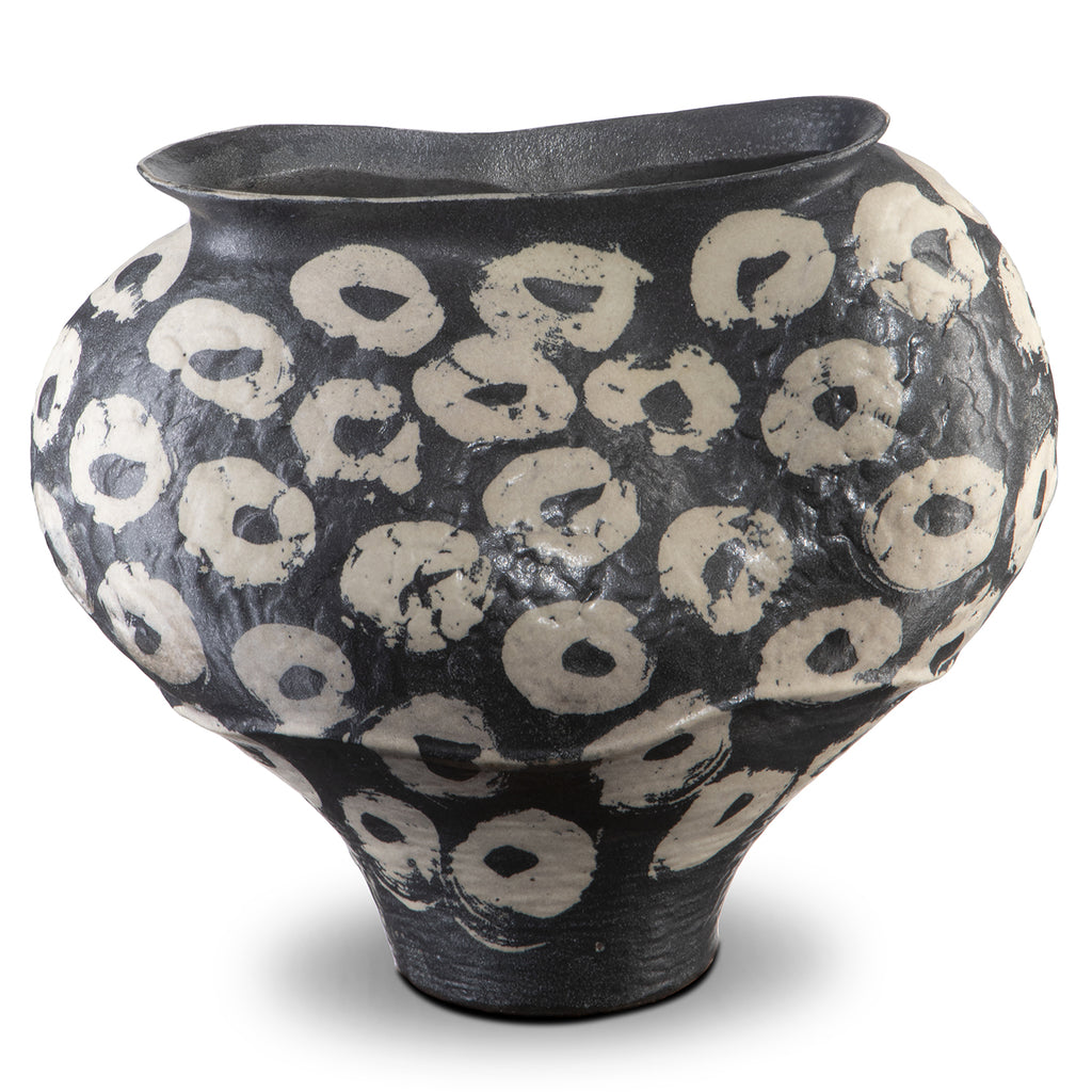 The Japonesque Bowl is poetry in motion, and not just because its asymmetrical form creates a sense of movement but because the swirling brushstrokes along its porcelain surface do as well. The black vessel is created by a studio artist and, because it is handmade, each one will vary slightly to make each piece unique — some will be darker and, because the brush patterns are hand-painted, they will be random from piece to piece.