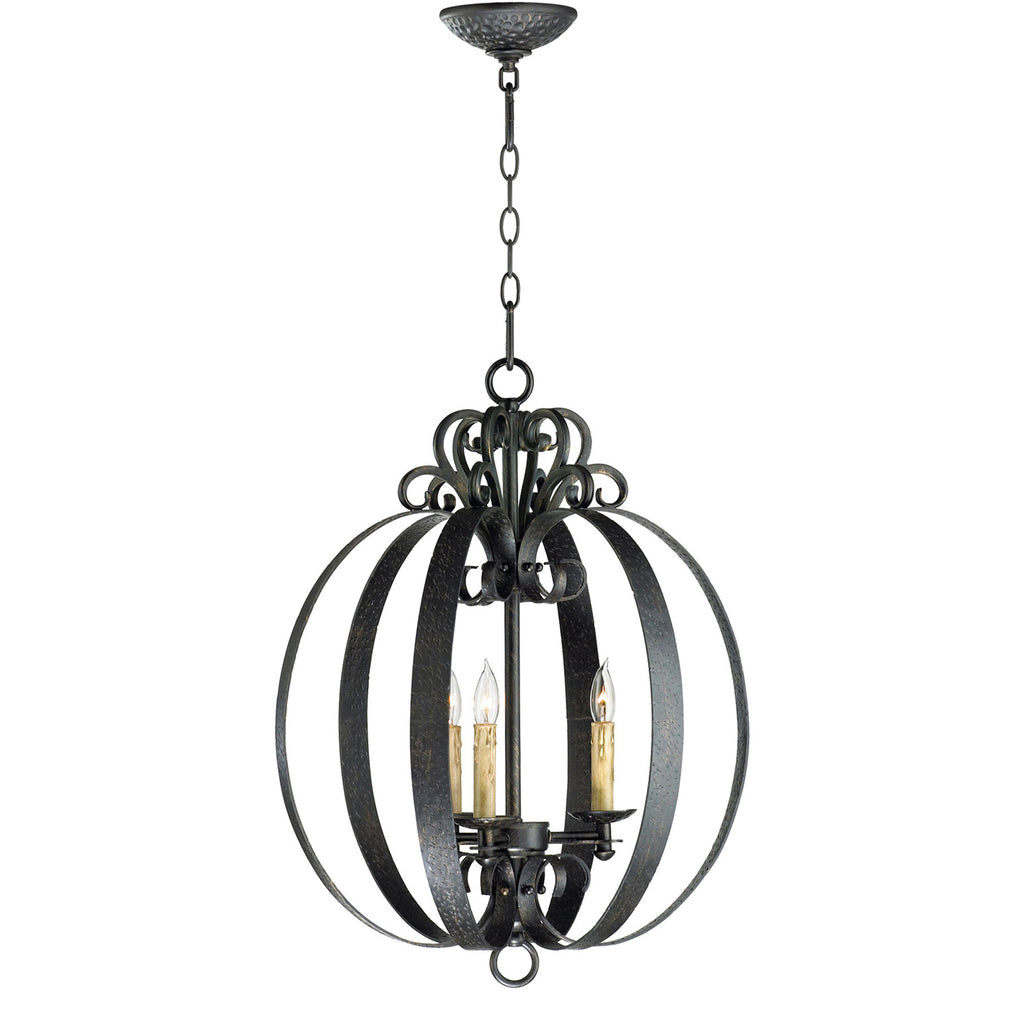 Designers pulled out all the stops to create an ornate, classic look in this wrought iron pendant. Gorgeous crystal accents enhance a sleek St. Regis Bronze finish, making this three-light hammered bronze wrought iron pendant an artistic and timeless choice.