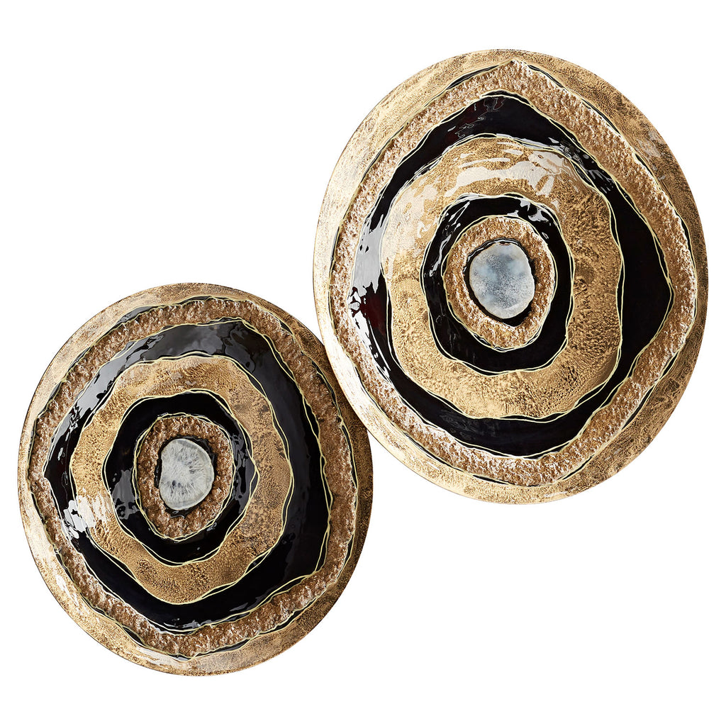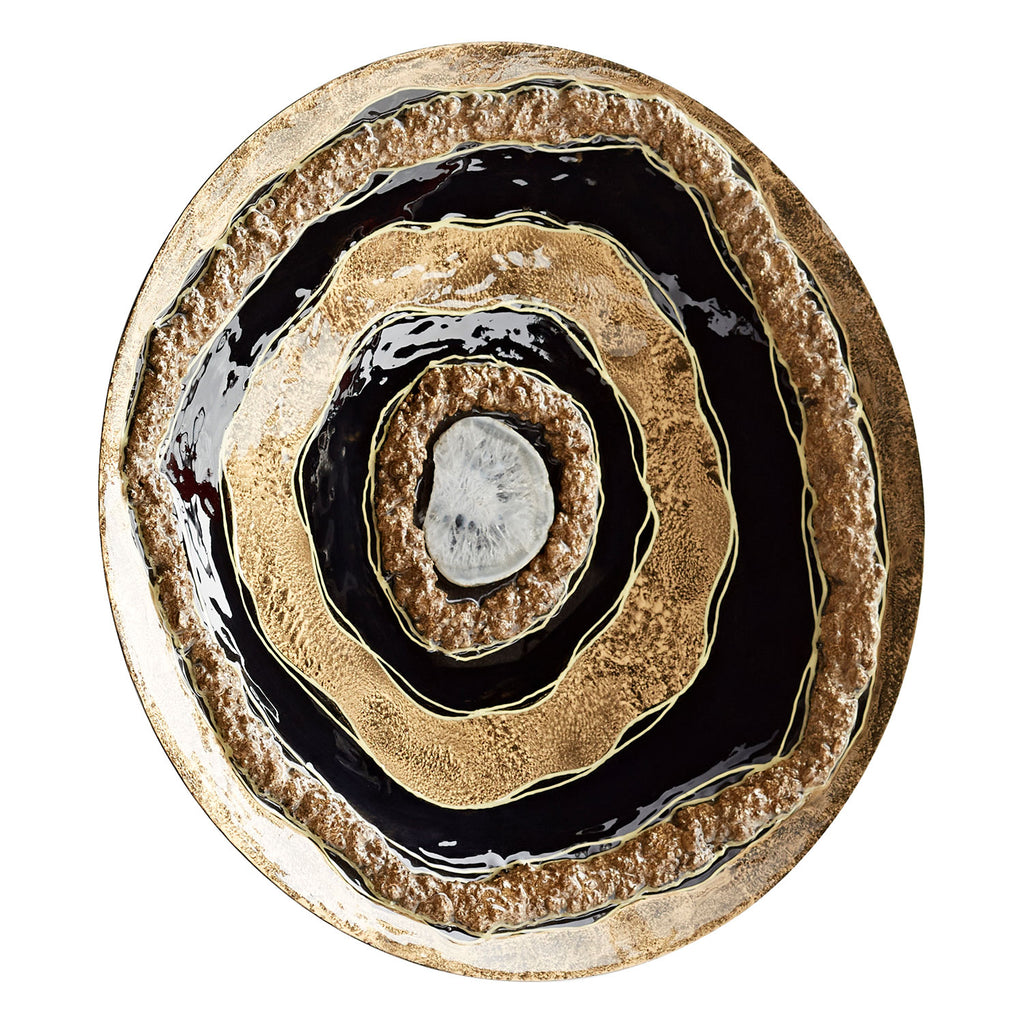 Lend an eclectic feel to your home or office with wood art from Cyan Design. Distinctive and versatile, this unique piece made from natural materials can be the inspiration for a room, or the finishing touch that perfects it. This is a circular structure that features many fine details and texture. Its speckled coating gives slight pops of light to the dark surface with a center stone highlighted in the middle. This piece has many details that elevate its artistic appeal and is perfect for elevating style in living rooms, offices, commercial, and residential spaces. This wall art can also be paired with many different decor styles.