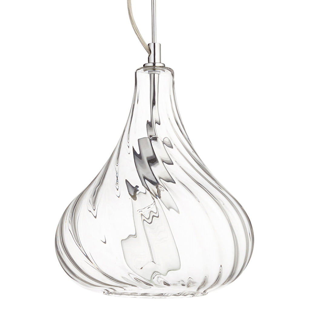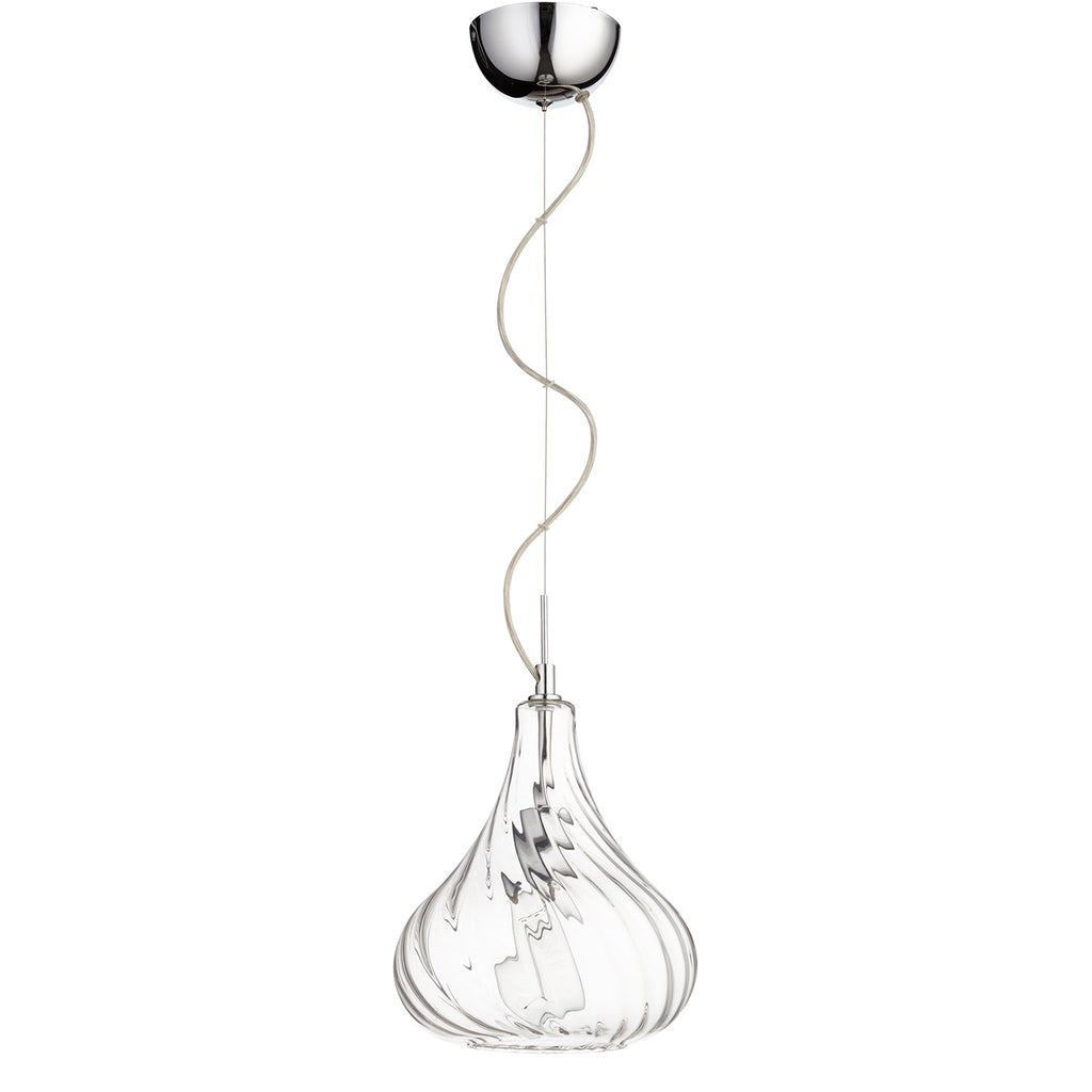 Choose a fixture that dazzles with this one-light glass pendant. Covered in a textured clear glass shade, this pendant offers a captivating output. A winding cord complements the shade’s swirling design.