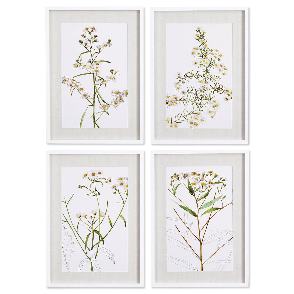 Each with their own distinct composition, this set of four Daisy Prints makes a sweet accent for your wall. The ivory linen-like mats and simple white frames make them neutral enough for any casual space.