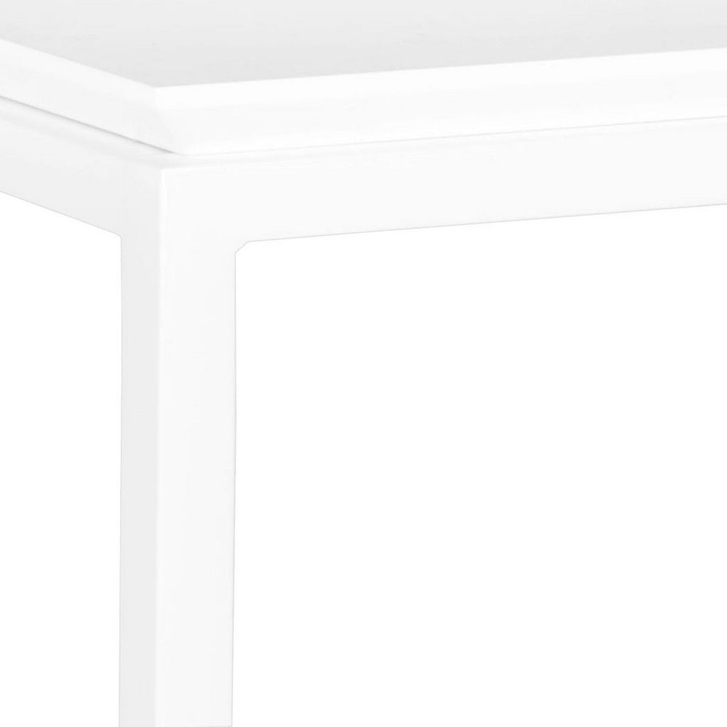 The solution for clean-lined sophistication in transitional or contemporary rooms, this white desk is a modern update of the classic Parsons table. It’s thin but sturdy white powder coated iron legs support a top with the sleek look of lacquer.