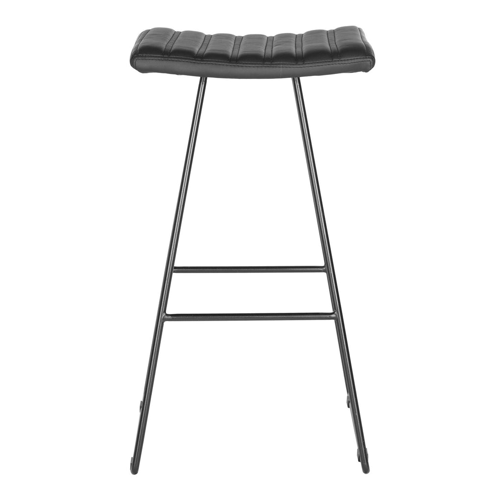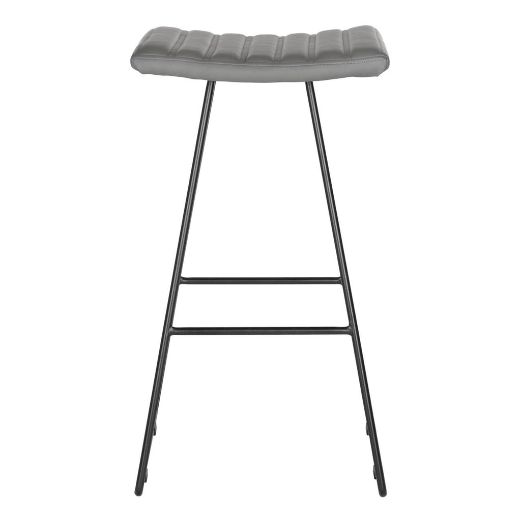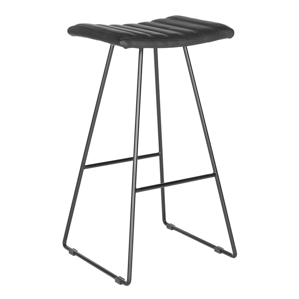 Raise the bar for style in the kitchen or family room with the airy look and clean silhouette of the this bar stool. A comfy channel-quilted seat of cream, black or gray PU leather rests atop a whisper thin A-line frame of iron supported by sturdy crossbars. Sold as set of 2.