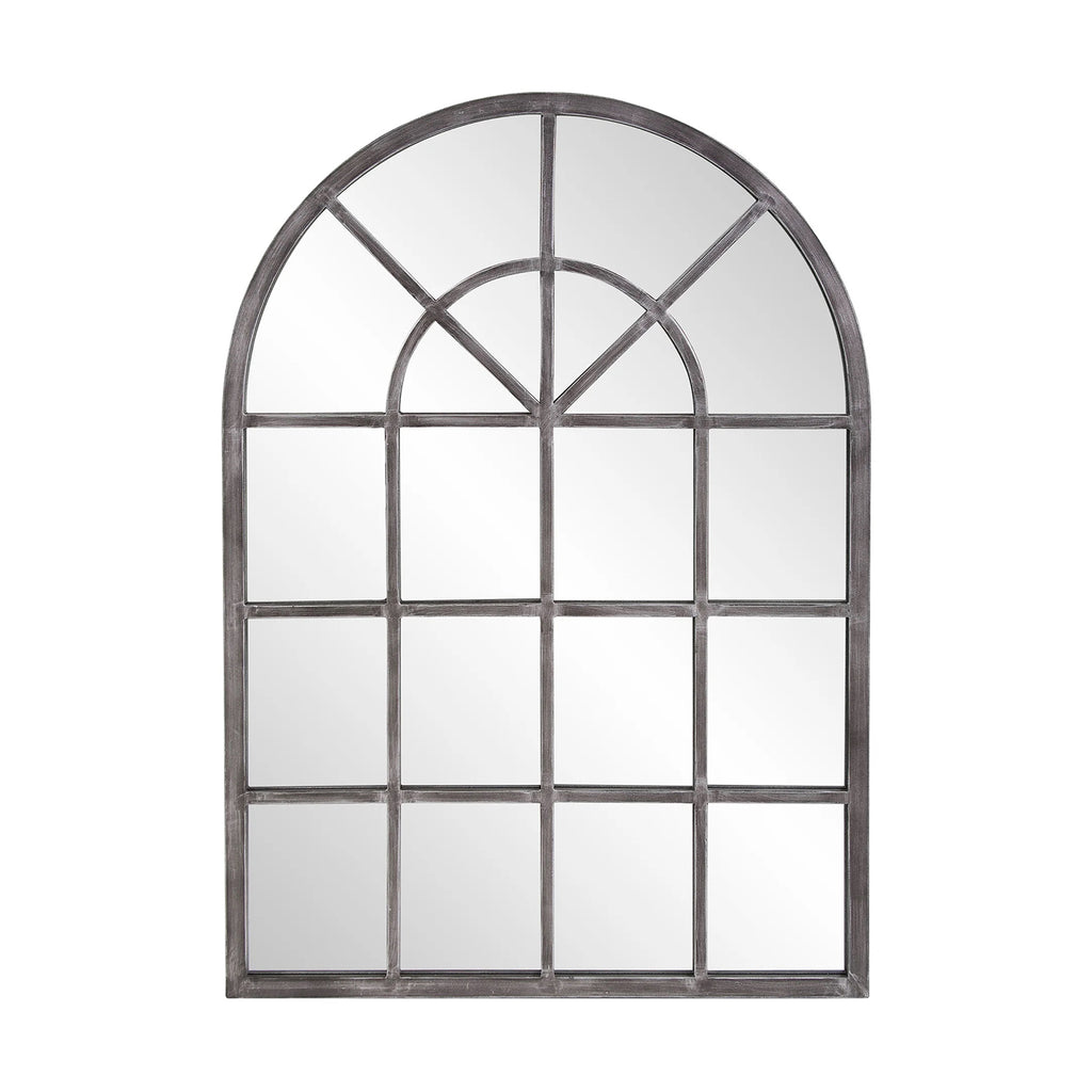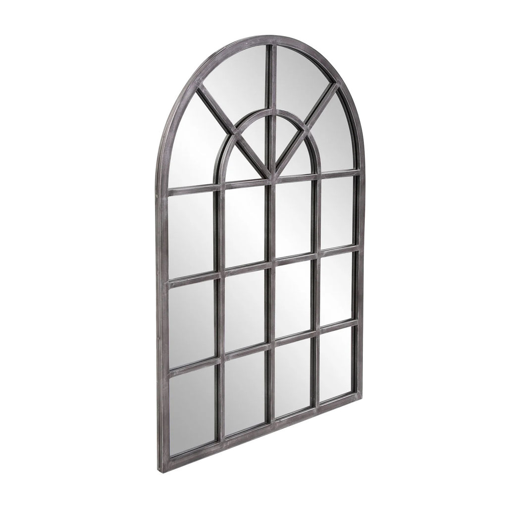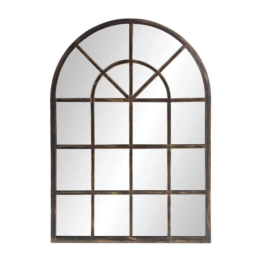 The Fenetre Mirror is a great piece because it resembles an arched window; complete with sectioned window panes. The wood frame is finished in a lacquer that has distressed accents making it perfectly fit into your Shabby Chic or Cottage-esque decor. It is a perfect focal point for an entryway, bathroom, bedroom or any room in your home. D-rings are affixed to the back of the mirror so it is ready to hang right out of the box! The mirrored glass on this piece is not beveled.