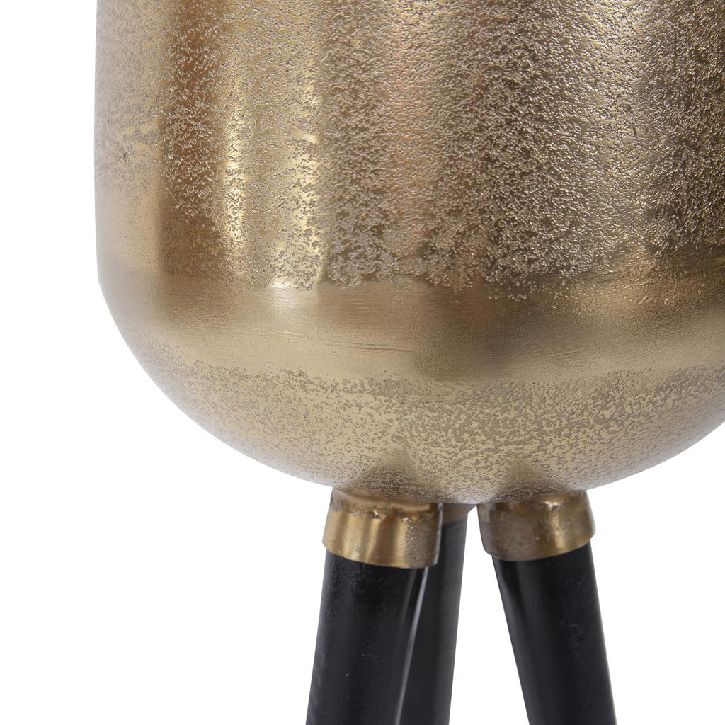 The Finn planter design features a sleek tripod base in matte black with a top textured bowl in rustic gold all cast out of aluminum. Whether its your favorite plant or a striking floral arrangement, these elegant modernistic vessels will add just the right touch of European styling.