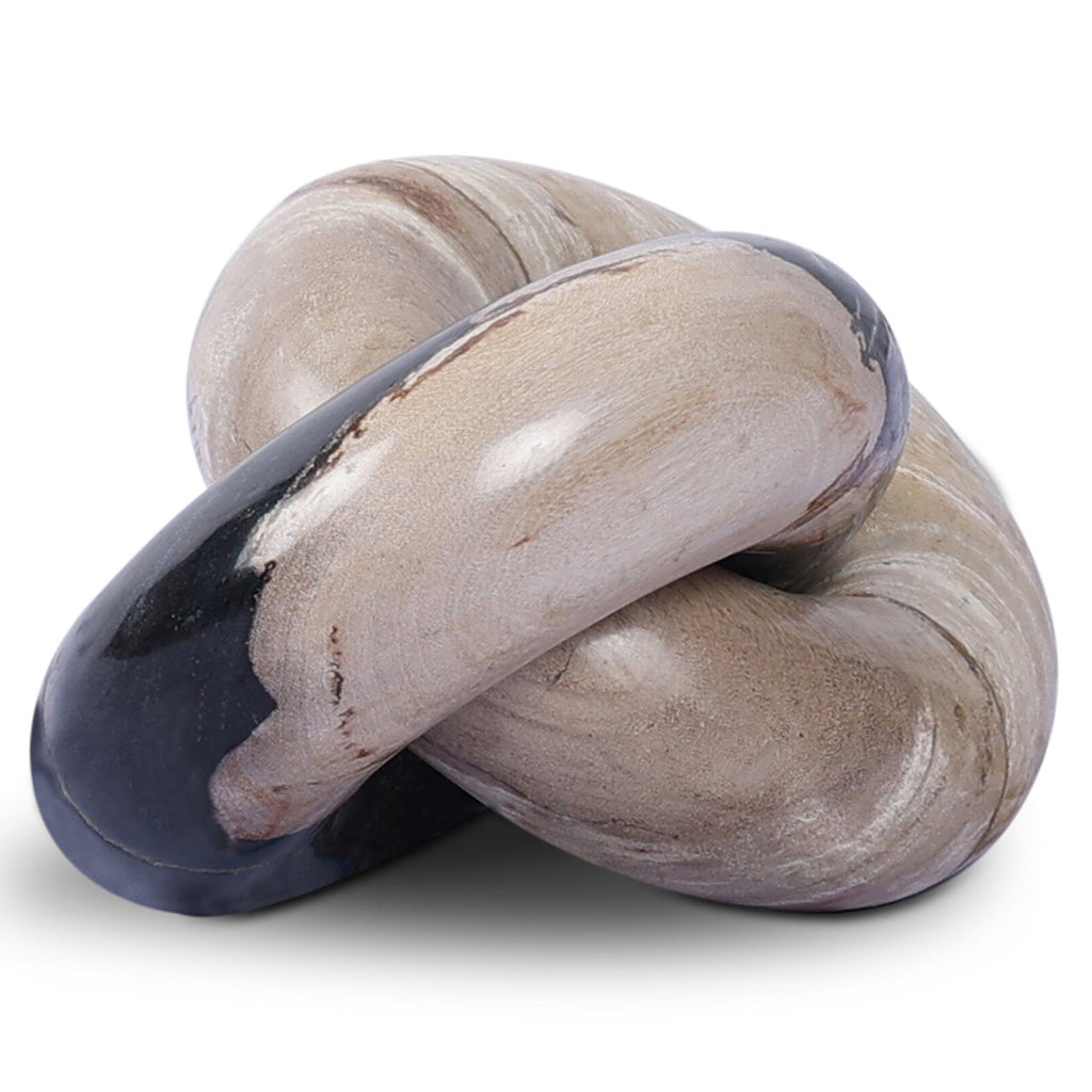 Craft character on your bookcase, entryway table or any other surface with a pair of interlocking rings of petrified wood. Reclaimed and perfectly preserved fossilized wood is given new life, hand carved and polished into striking accents and styles. Due to the natural fossilization process, which preserves and exhibits the unique details of the original bark and wood, a variance in color and texture is to be expected and speaks to the one-of-a-kind nature of these pieces.