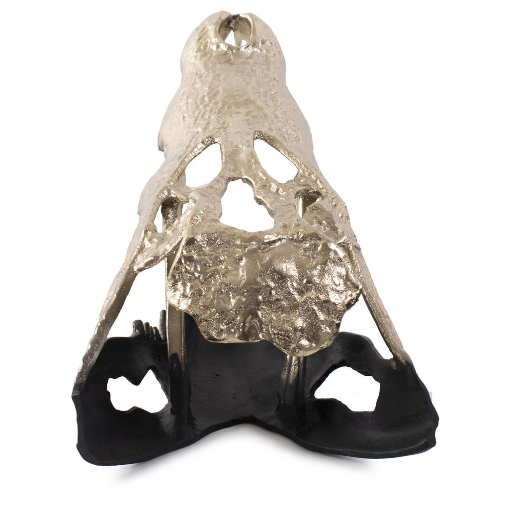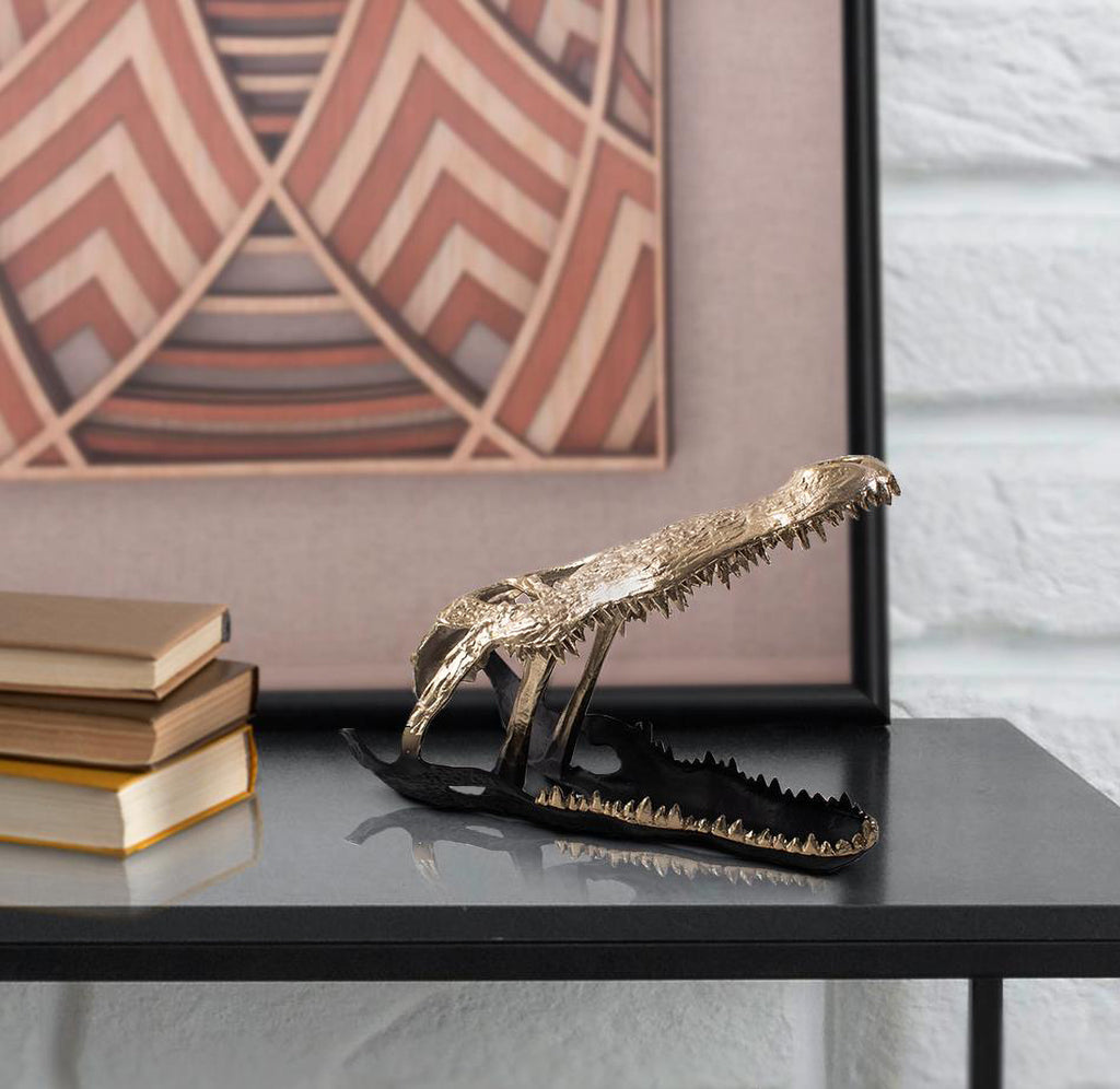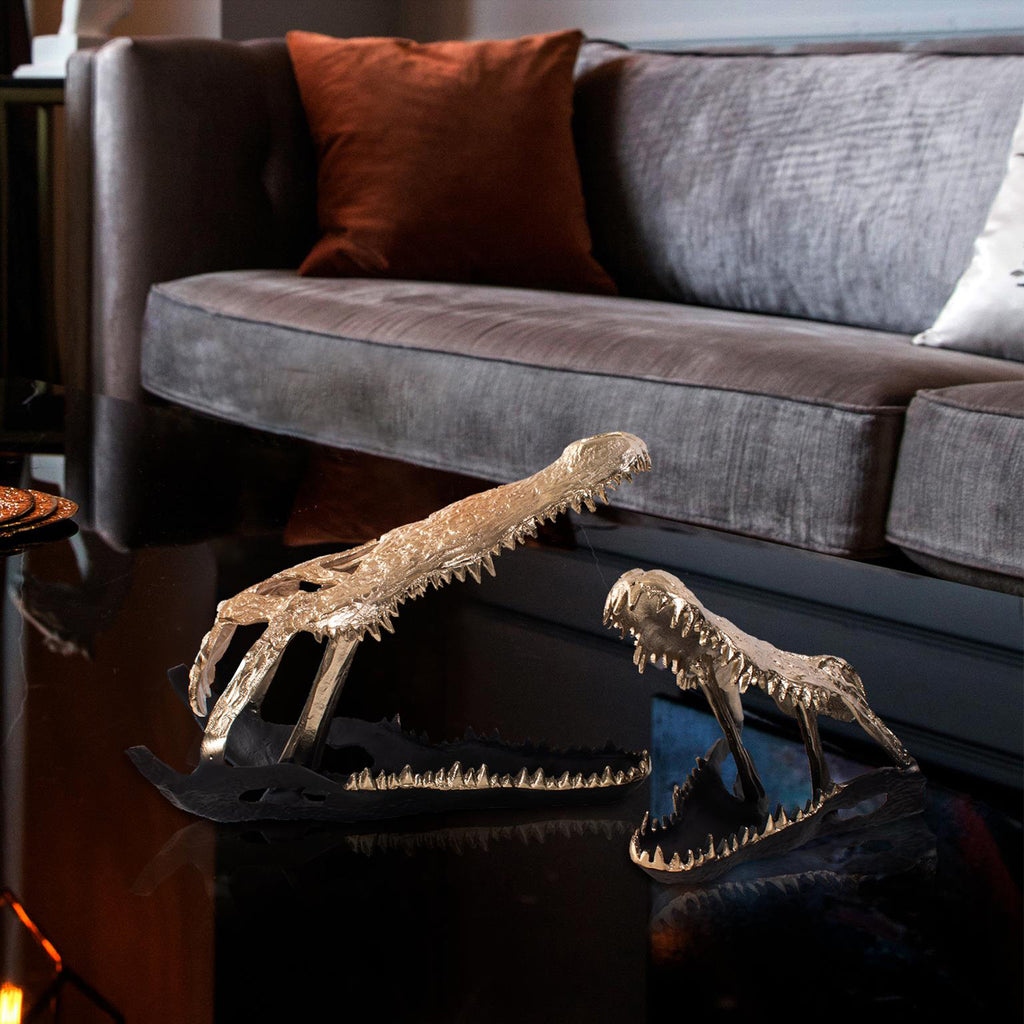 Unveil the intrigue of our dual-tone alligator sculpture, an artful fusion of the wild and the opulent. This striking piece is a mesmerizing combination of silver and black, evoking a sense of monochromatic mystery. This dual-tone design not only captures the essence of the enigmatic alligator but also creates a dynamic visual statement. Whether as a bold centerpiece in your living room or as a conversation starter in your office. Embrace the duality of nature's beauty with this unique piece, where art and the wild converge to redefine your interior decor.