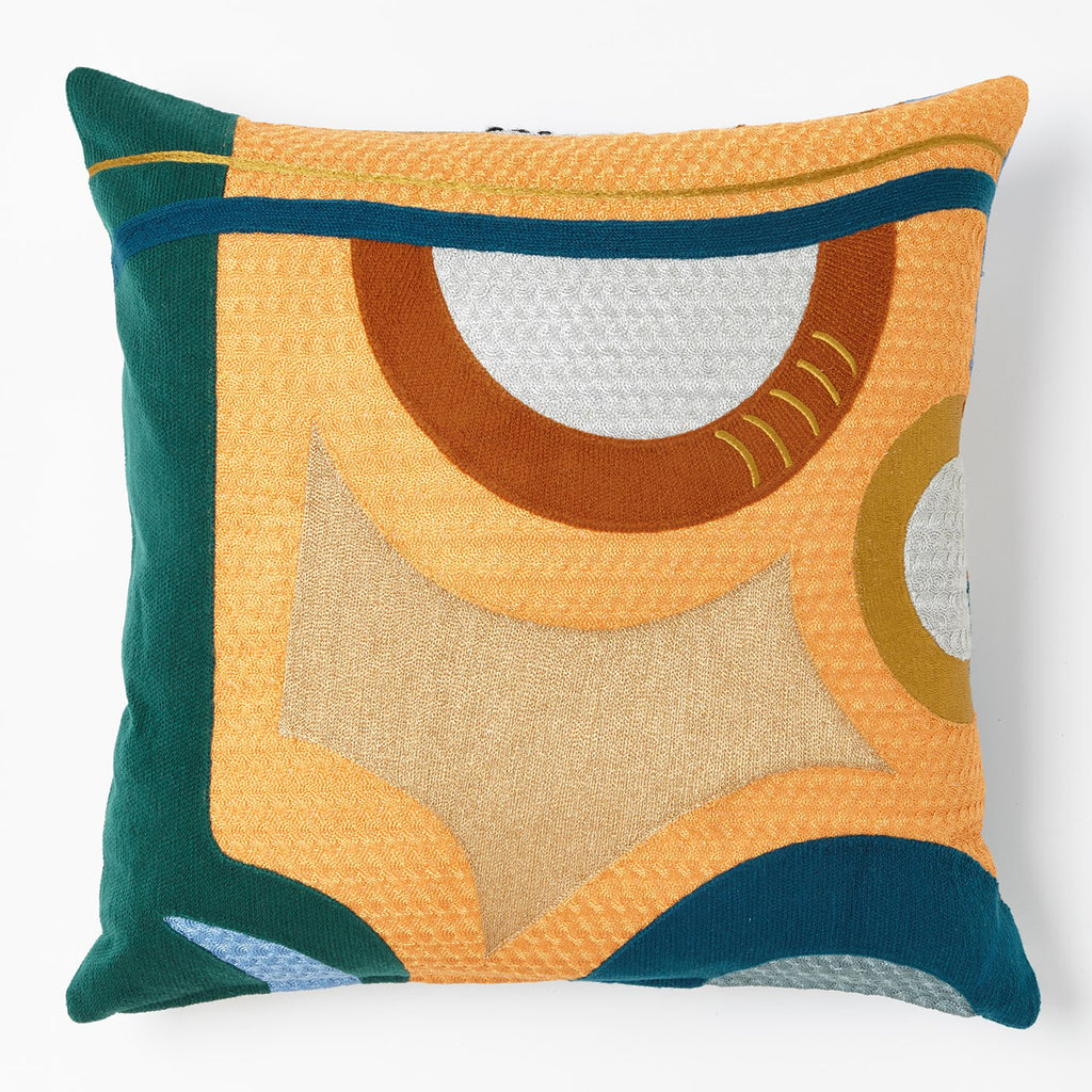 The Global Views Herr Hans Pillow is a modern take on a classic portraiture with hand embroidered cotton details and a down fill insert.