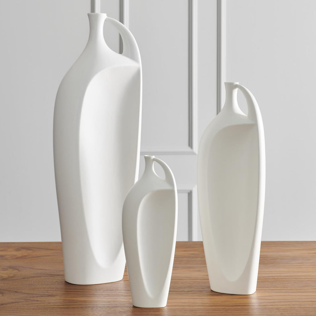 Handcrafted in Portugal, one side of this vase features an indentation, the other side follows the natural curve of the vase. Available in three sizes.